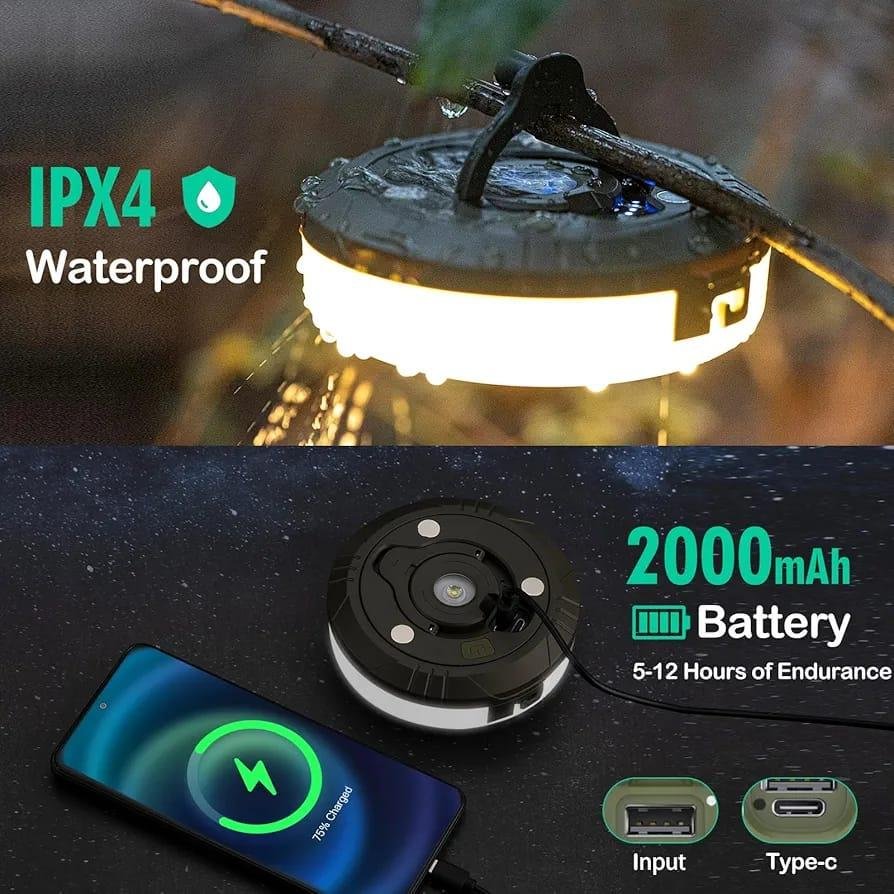 Lampes De Camping 2 en 1 – Rechargeables Par USB – Portables Empilables – 8 Modes Pour La Randonnée – 8 Mètres