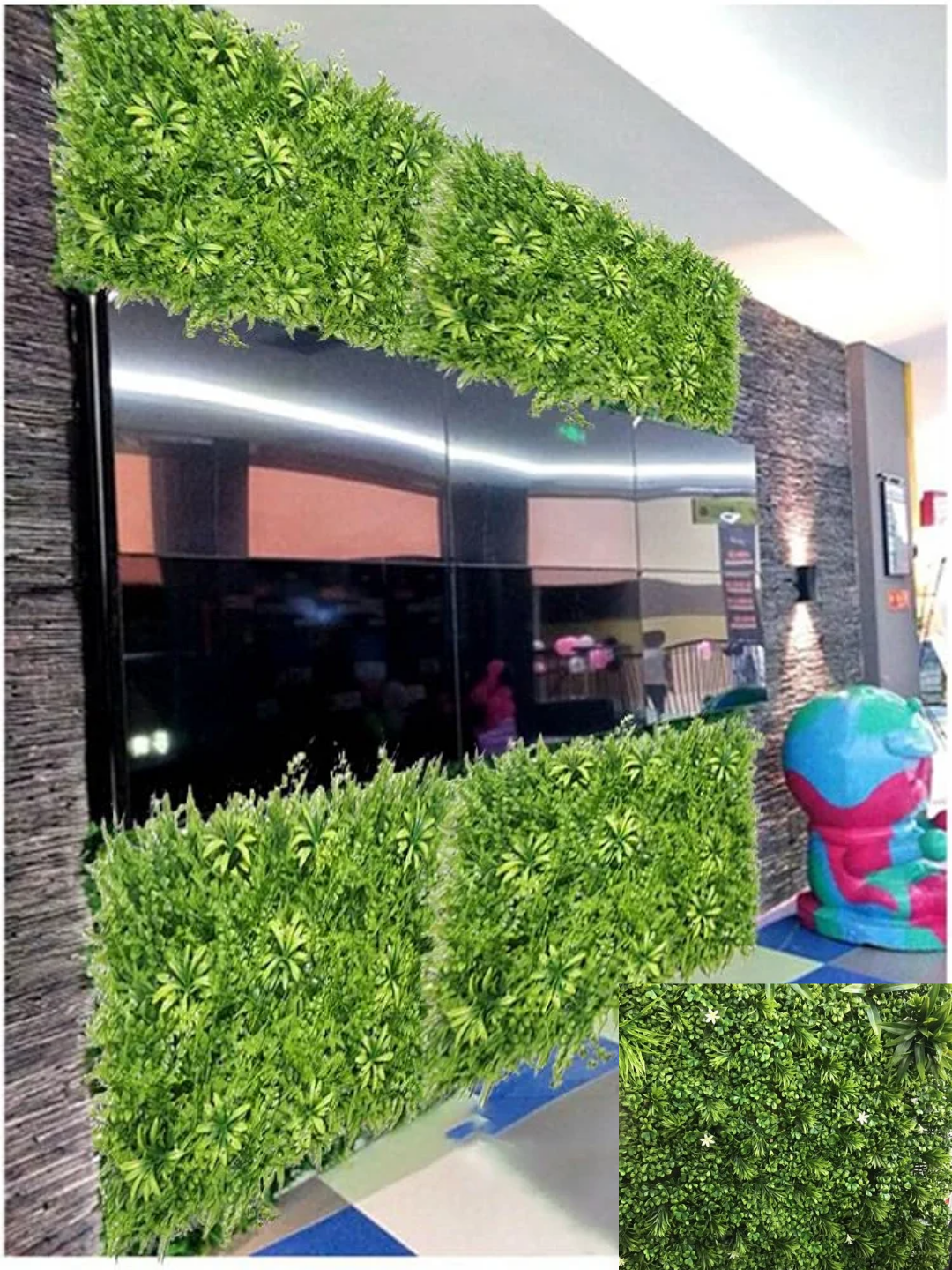 Idéal pour les familles, les hôtels, les salons, les cafés et plus encore, ce gazon vert artificiel ajoute une touche de nature à n’importe quel espace.
