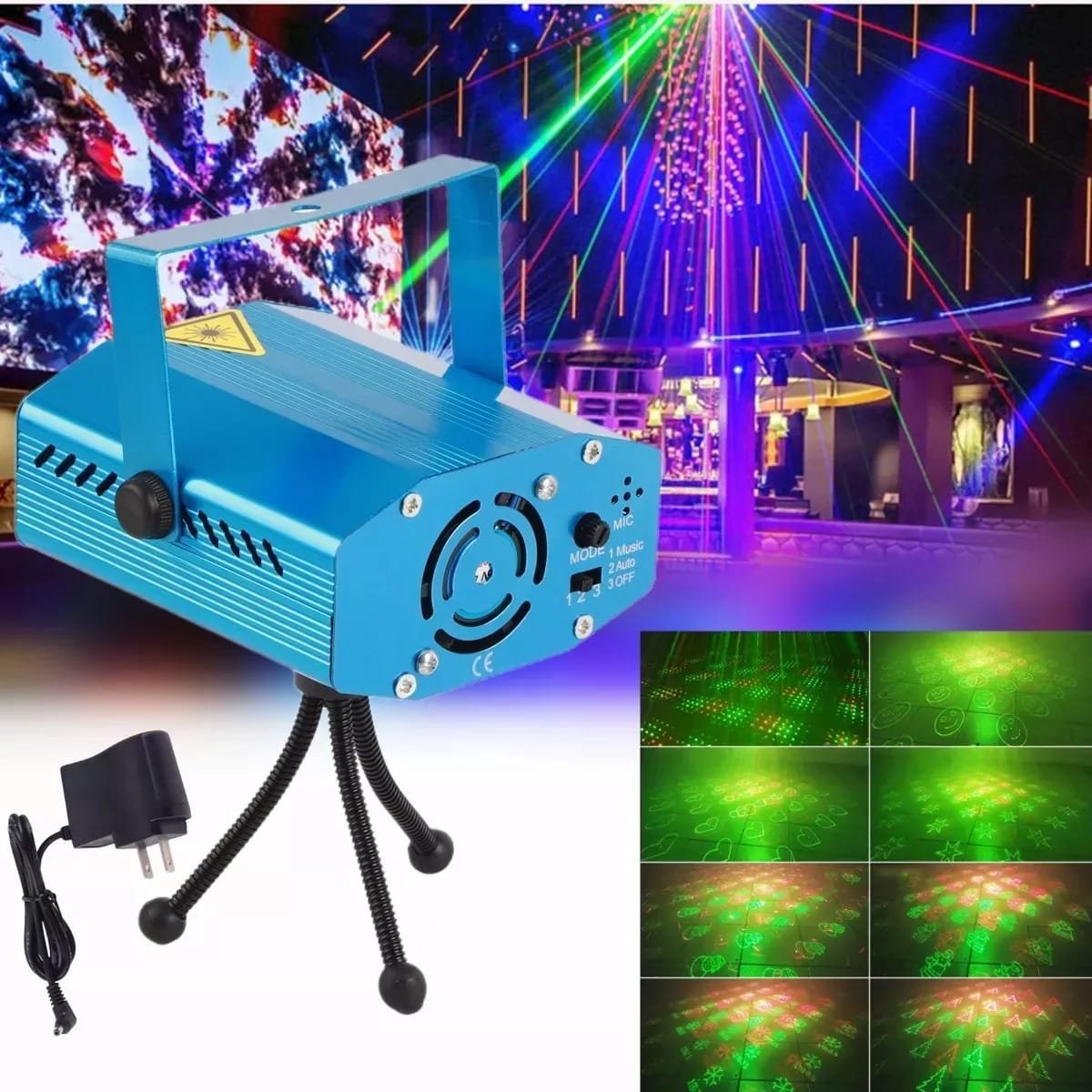 1× Mini Laser led + Support + Chargeur.