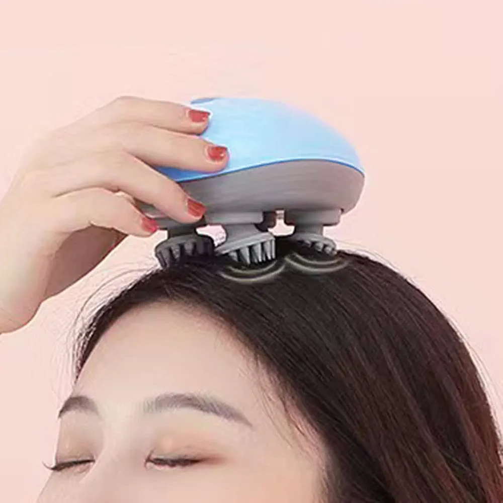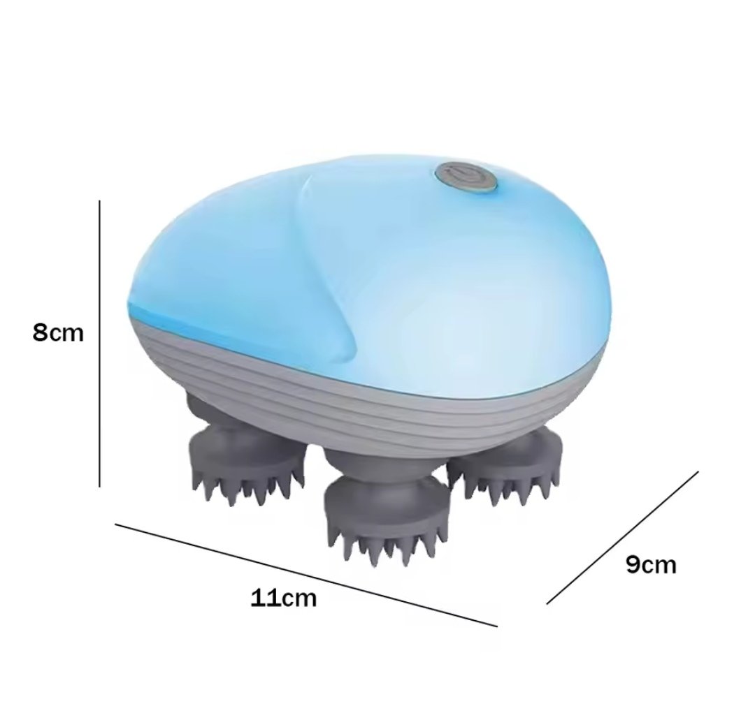 Masseur De Cuir Chevelu Sans Fil 3 en 1 Avec 96 Contacts en Silicone – 3 Modes de Pétrissage – Étanche IPX6 – Rechargeable – Bleu