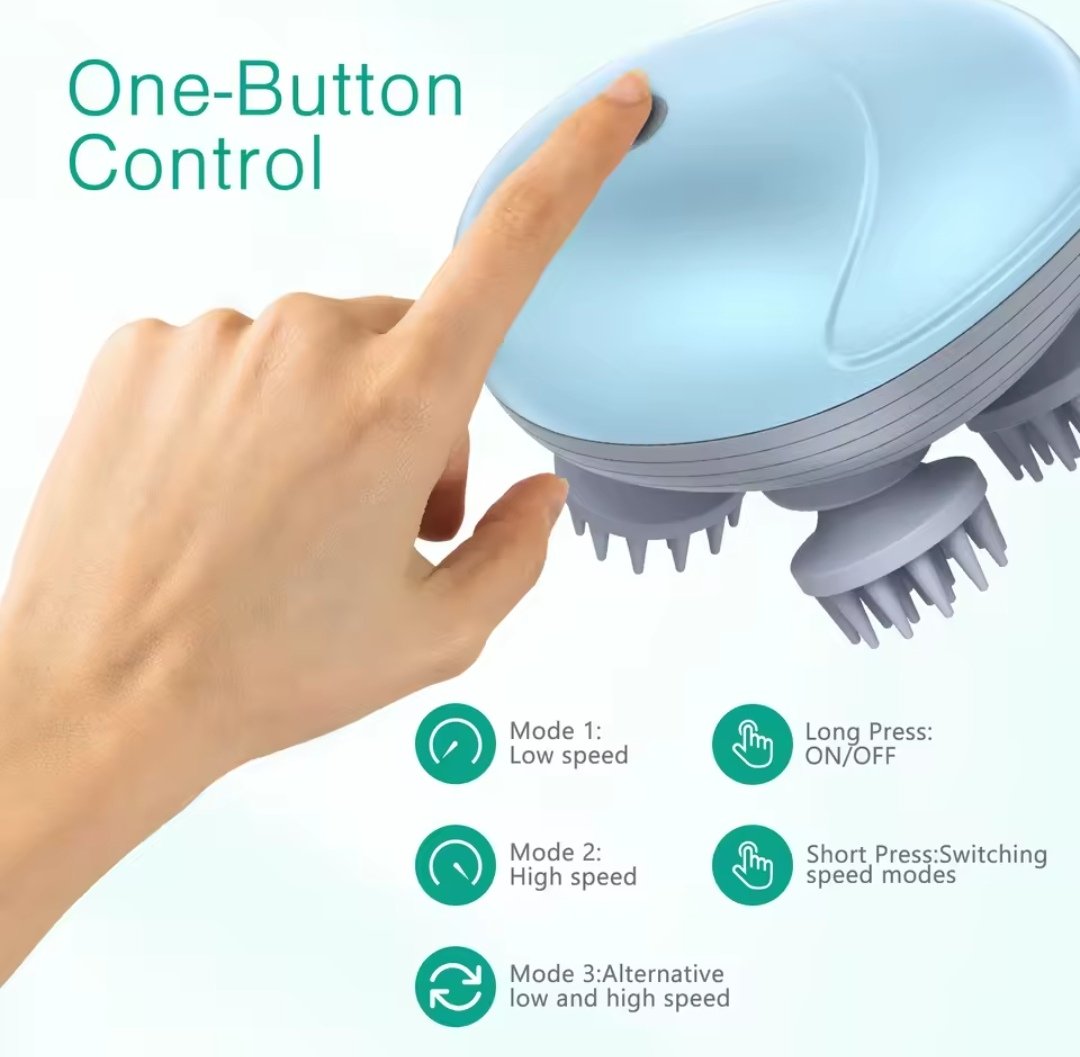 Le masseur de tête offre 3 options de vitesse pétrissage à basse vitesse, massage à vitesse moyenne et pétrissage à grande vitesse.