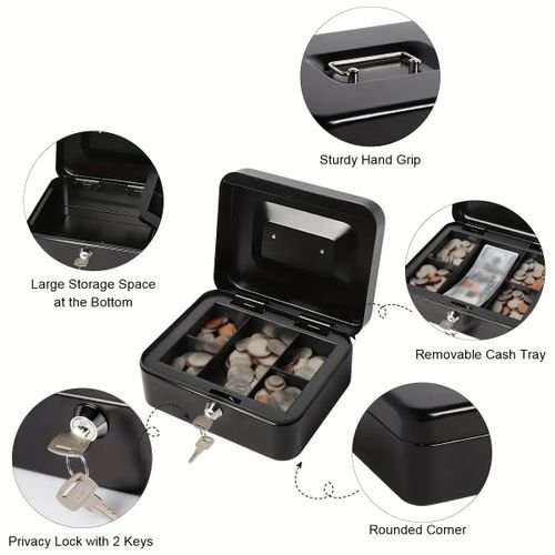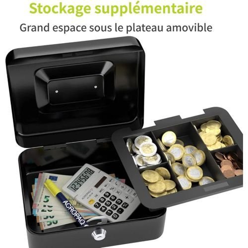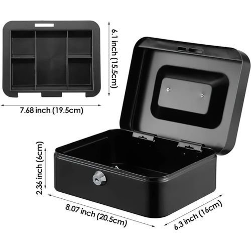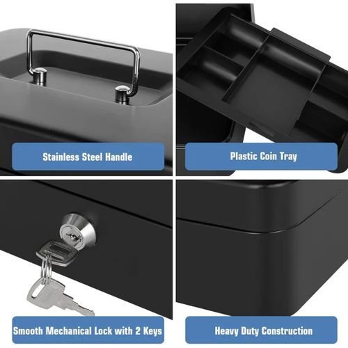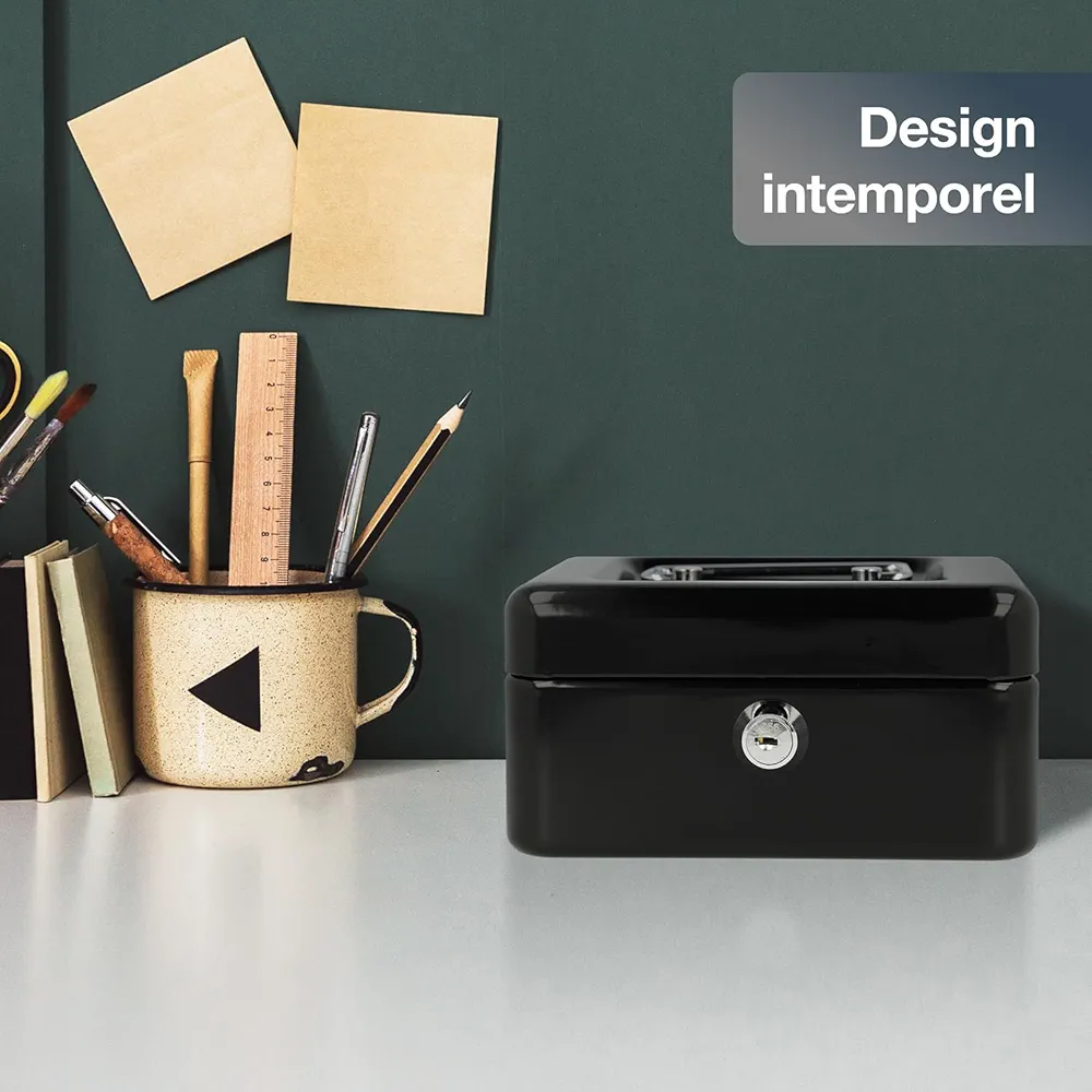 Métal Cach Box – Caisse à Monnaie – Coffre Fort + 2 Clés – 200*160*90 mm – Noir