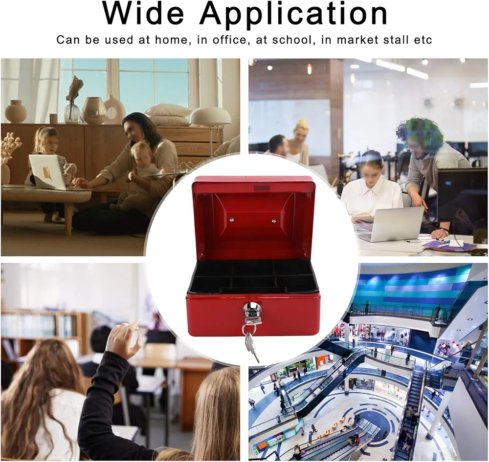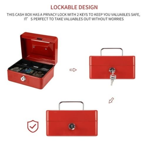 Métal Cach Box – Caisse à Monnaie – Coffre Fort + 2 Clés – 200*160*90 mm – Rouge