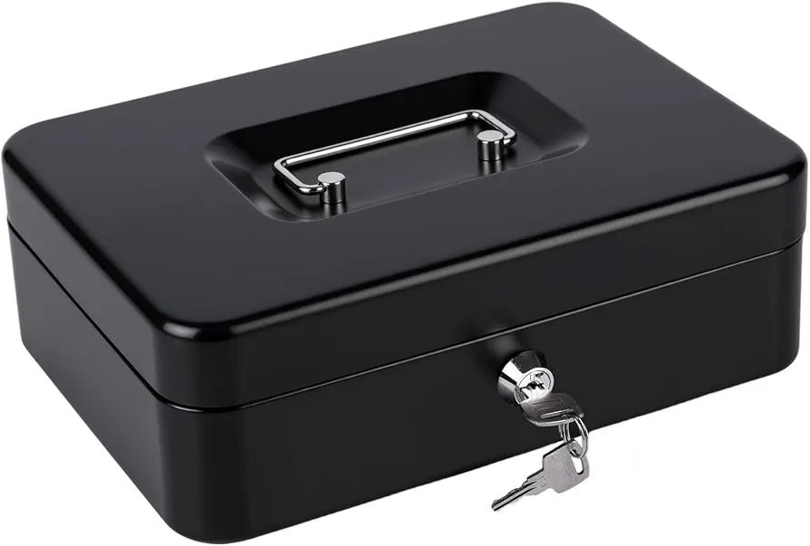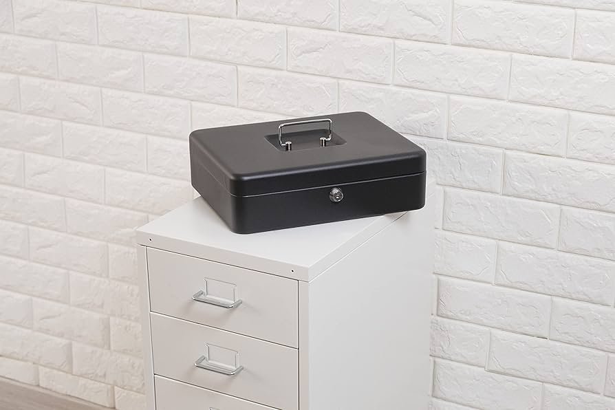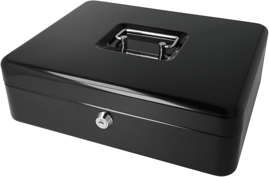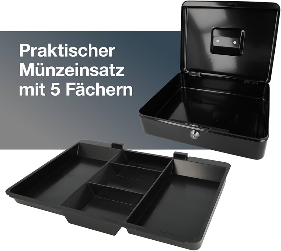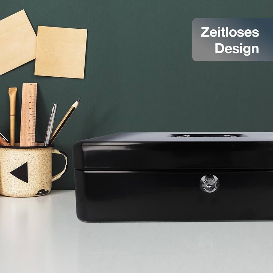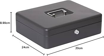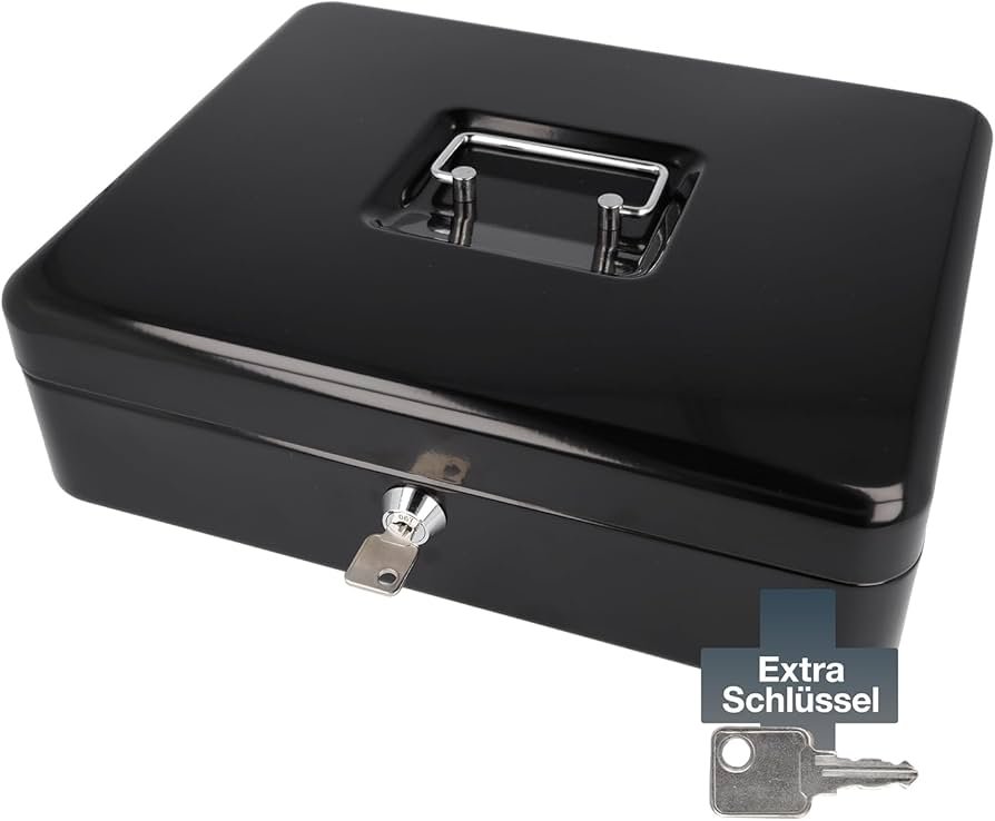 Métal Cach Box – Caisse à Monnaie – Coffre fort – Boîte De Rangement Avec 2 Clés – 30 x 24 x 9 Cm – Noir