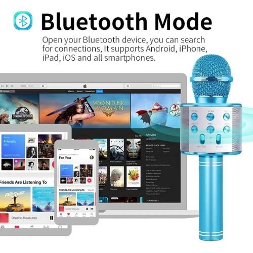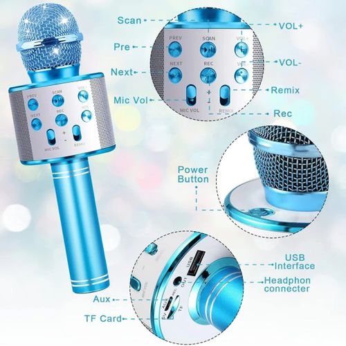 Micro karaoké Sans Fil et Haut-Parleur – Bluetooth – Rechargeable – Bleu