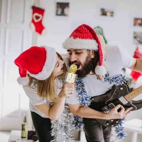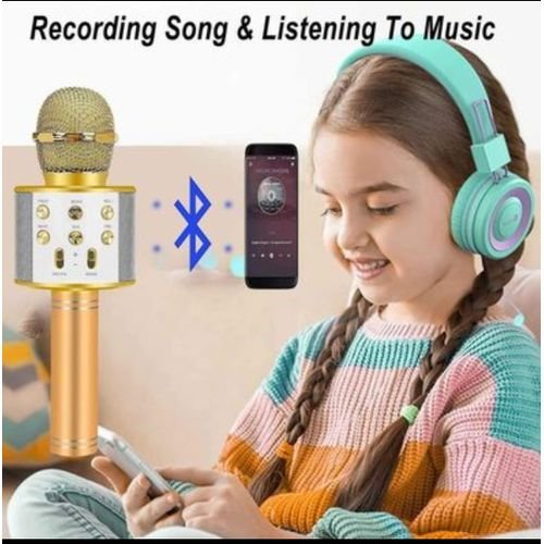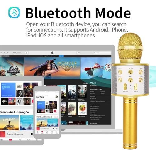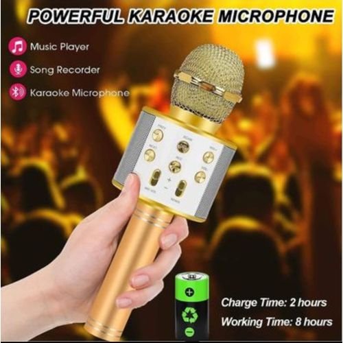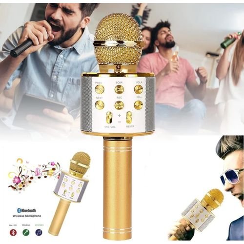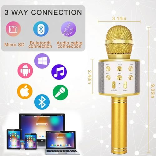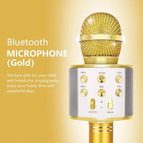 Micro karaoké Sans Fil et Haut-Parleur – Bluetooth – Rechargeable – Doré