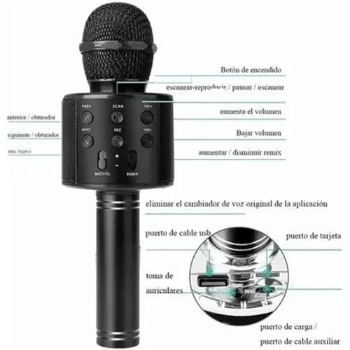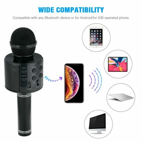 Micro karaoké Sans Fil et Haut-Parleur – Bluetooth – Rechargeable – Noir