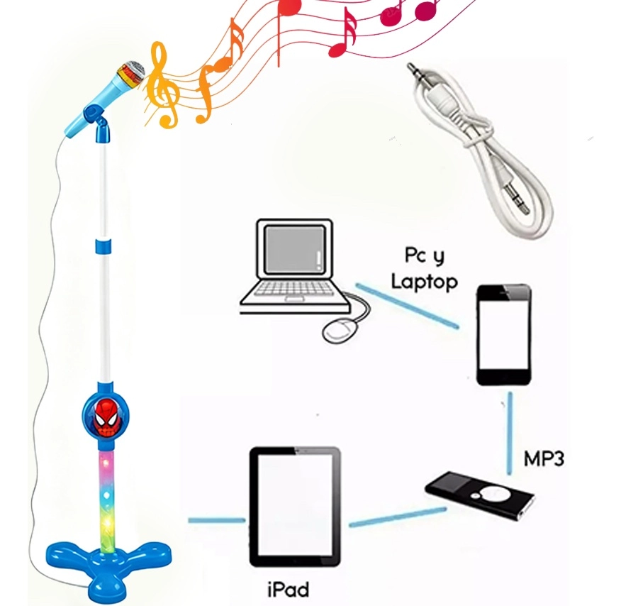Micro Karaoké Spiderman pour Enfants – Avec Support et Lumières LED