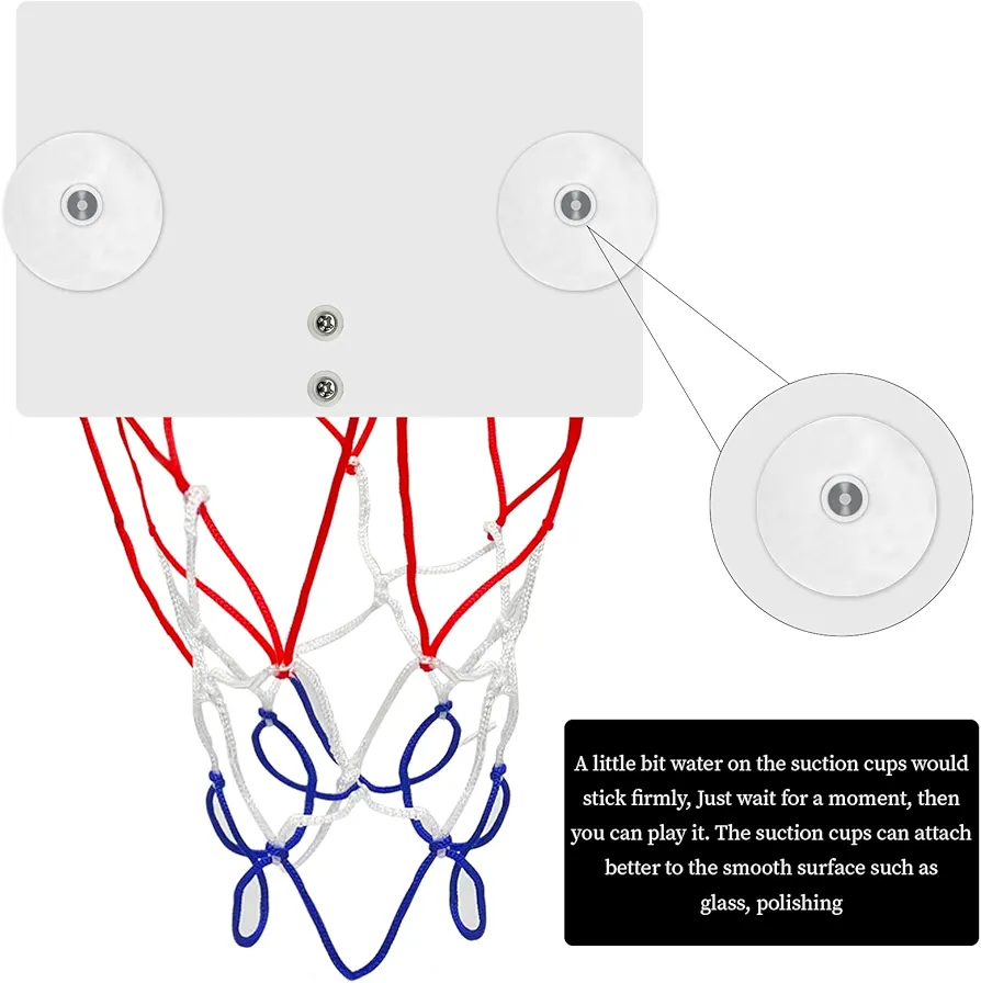 Les ventouses maintiennent solidement le mini panier de basket sur des surfaces lisses, ce qui le rend adapté à une utilisation dans la salle de bain, le bureau ou toute autre surface lisse et plane.