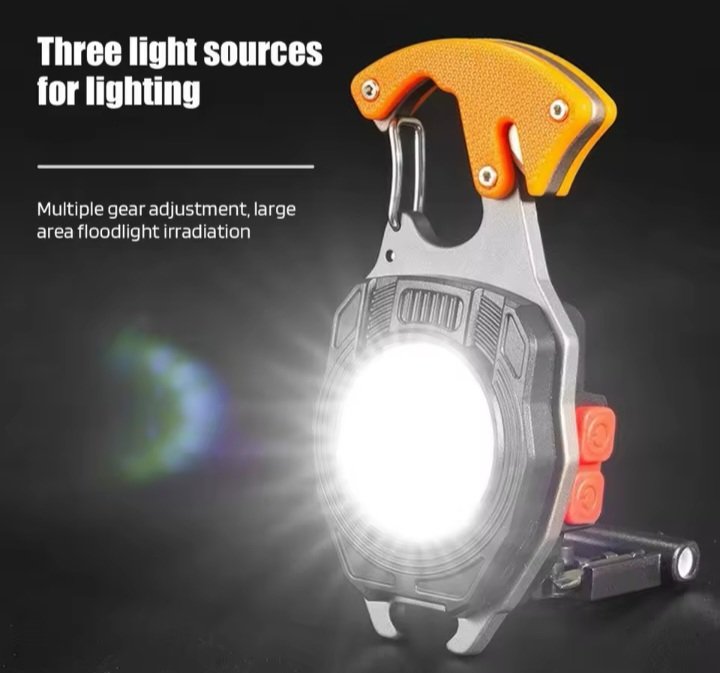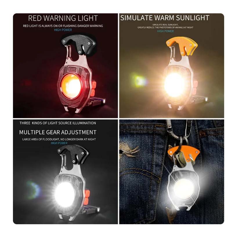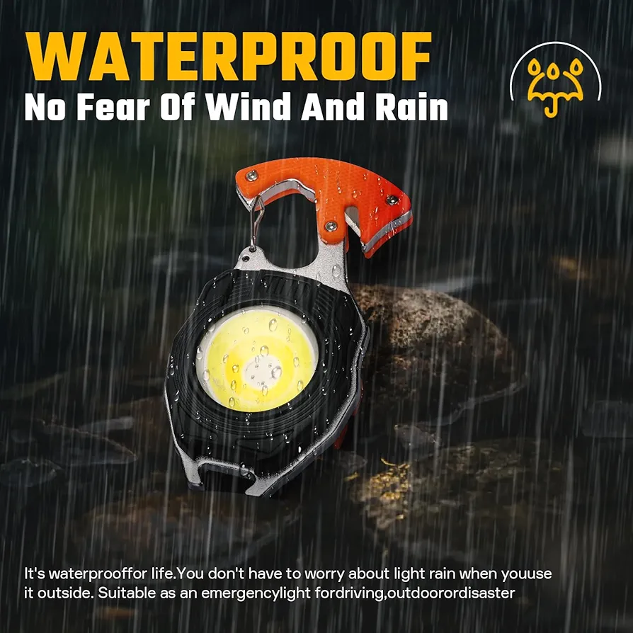 Idéale pour le camping, les promenades avec le chien, les recherches ou les réparations, cette lampe LED étanche avec crochet de verrouillage peut être accrochée à une clé ou à un sac et peut également servir de décapsuleur.