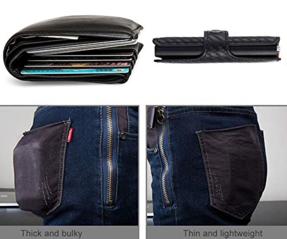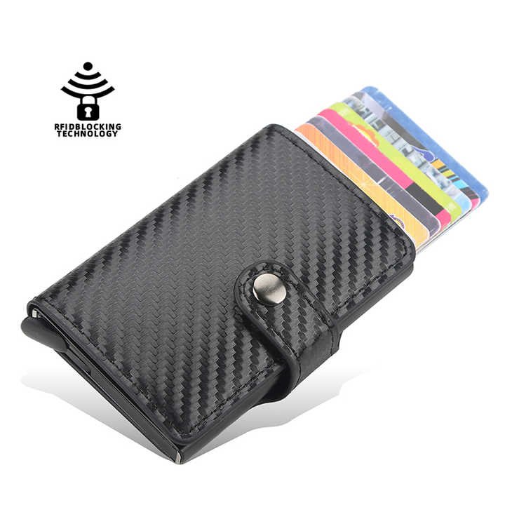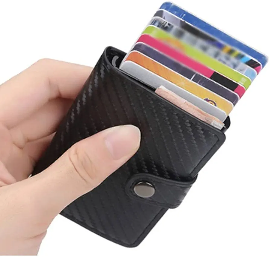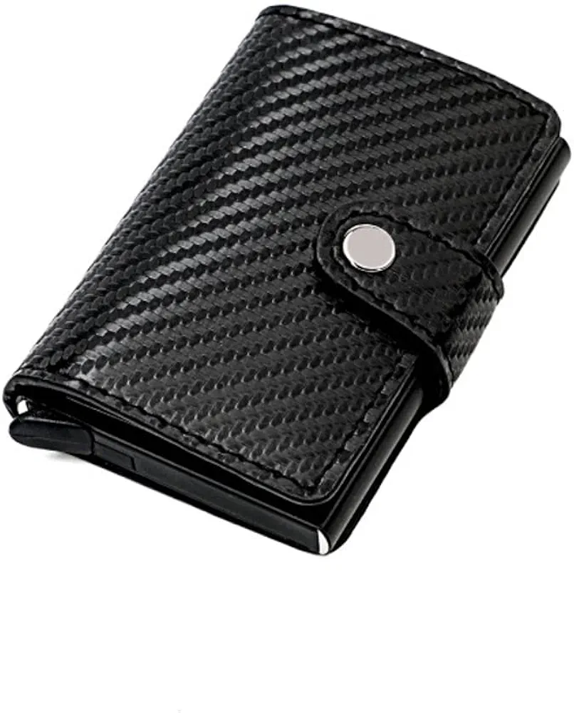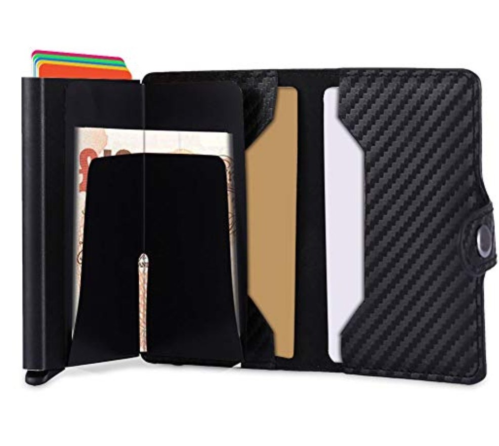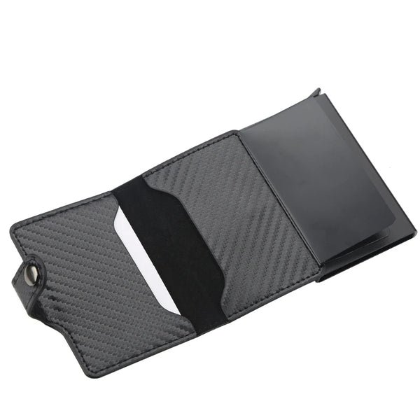 Mini Portefeuille Intelligent À Trois Volets – Fibre De Carbone et Cuir – 5 cartes – 3 Compartiments Pour Billets