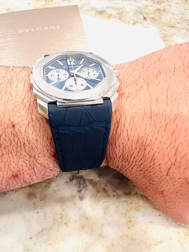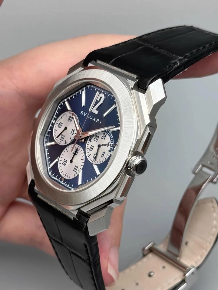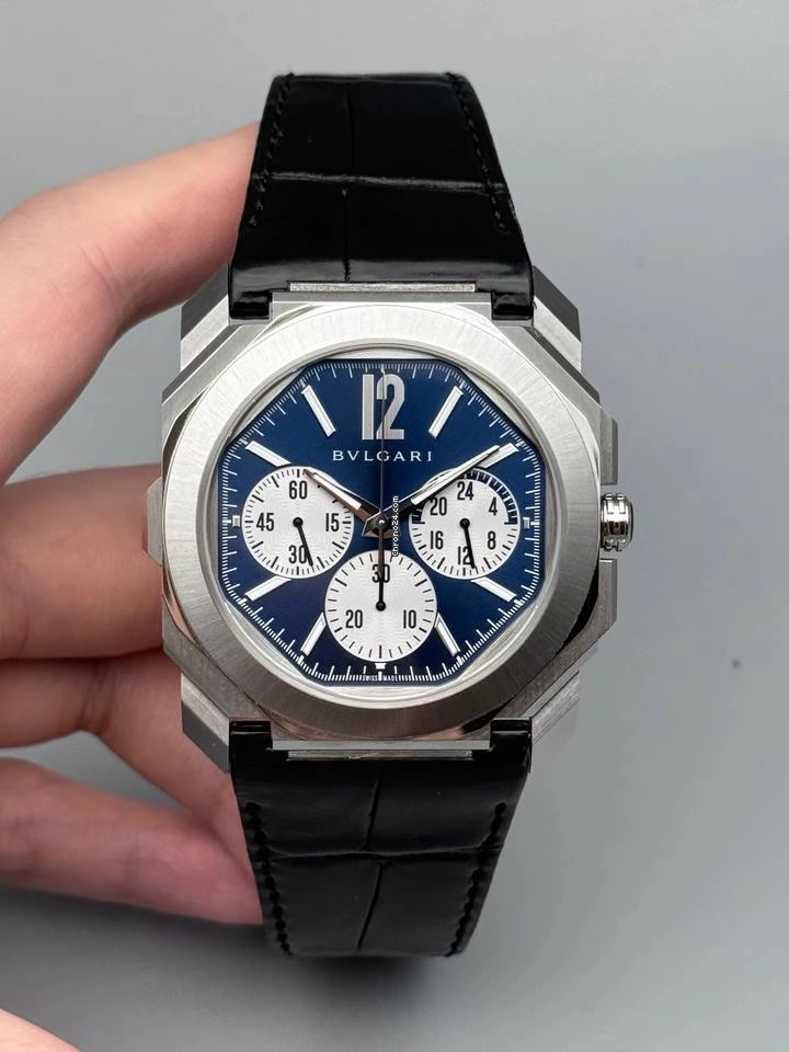 Montre Bulgari De Luxe – Boîtier En Acier – Bracelet En Cuir D’alligator – Résistante À L’eau – Bleu