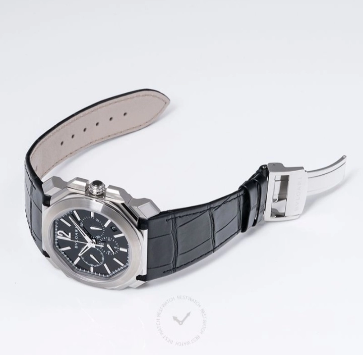 Montre Bulgari De Luxe - Boîtier En Acier - Bracelet En Cuir D'alligator - Résistante À L'eau - Noir