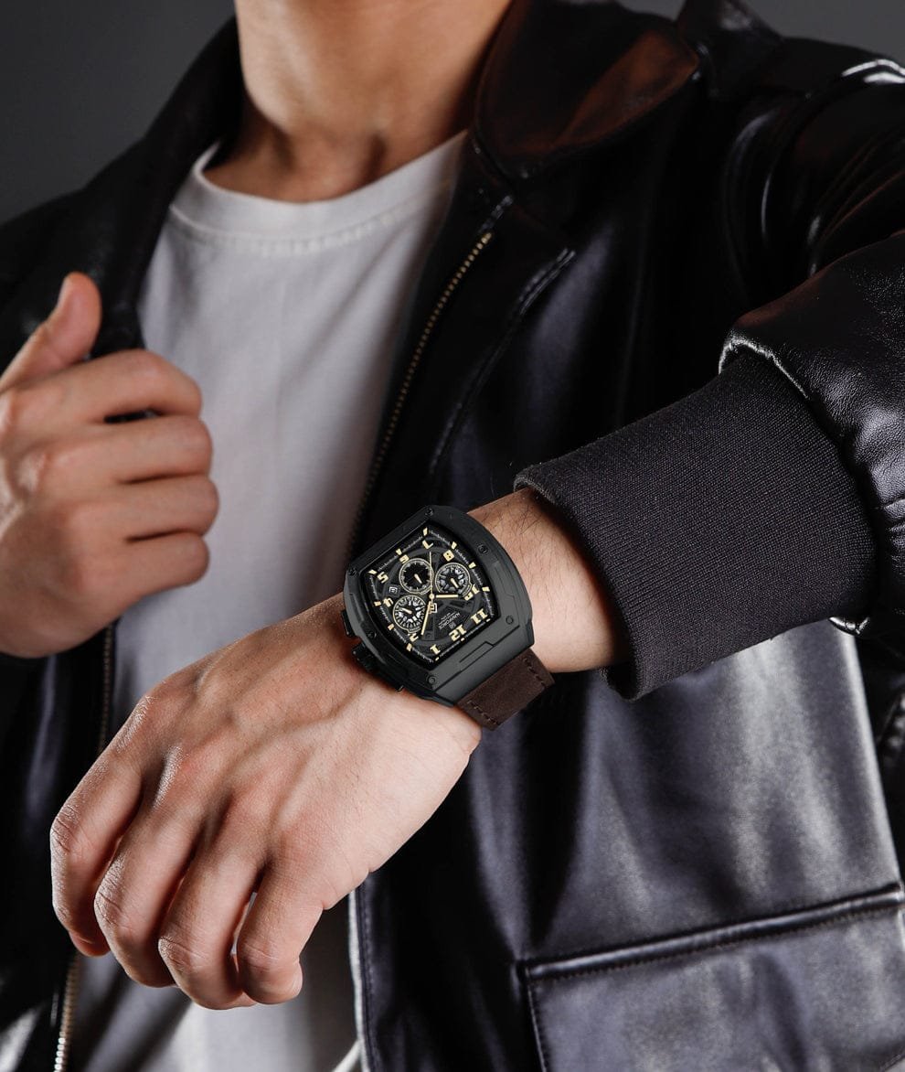 Les index lumineux assurent une visibilité optimale dans des conditions de faible luminosité, tandis que son bracelet en cuir véritable souple offre luxe et facilité d’ajustement.