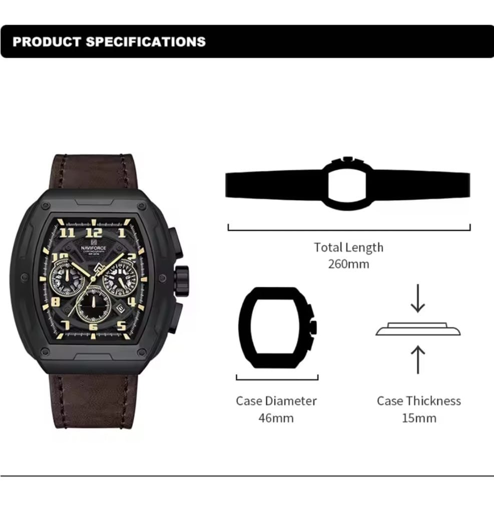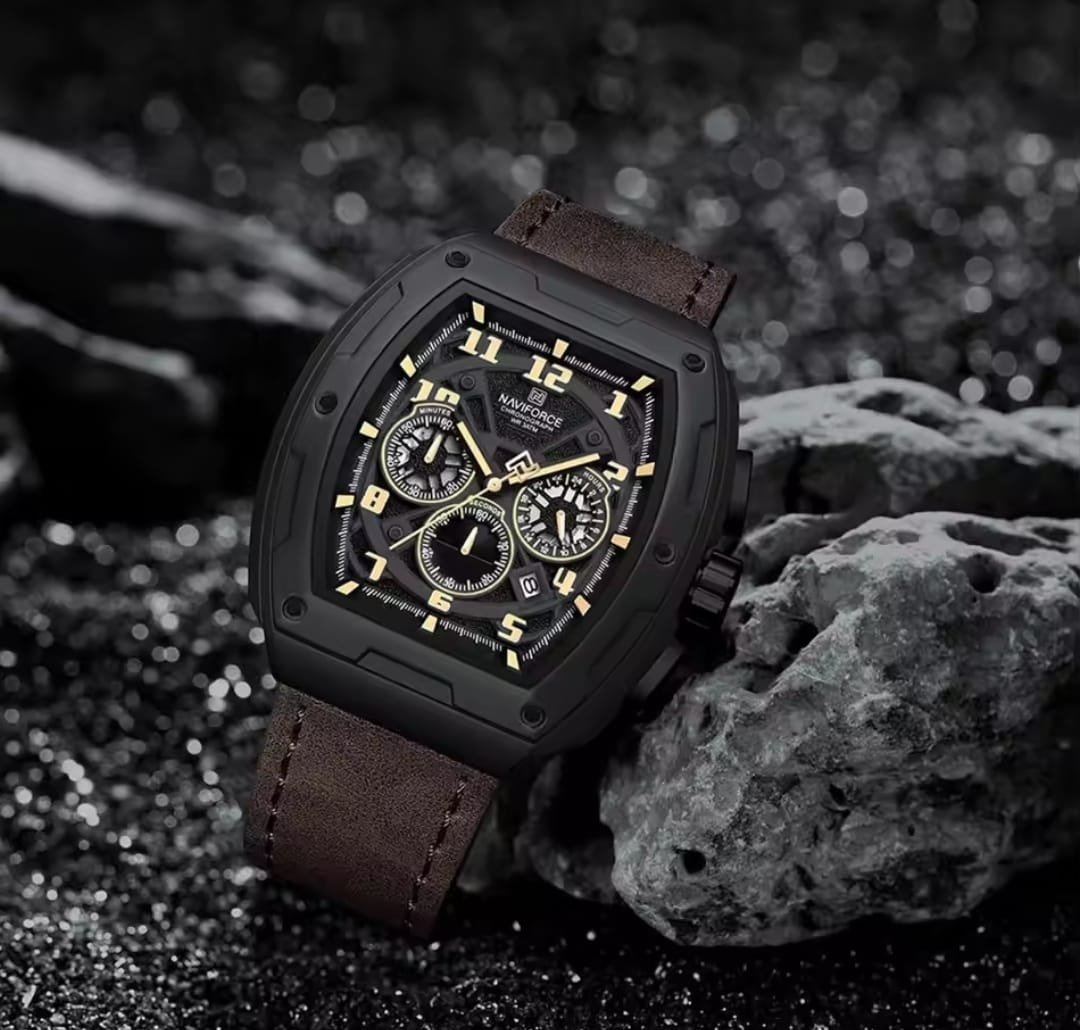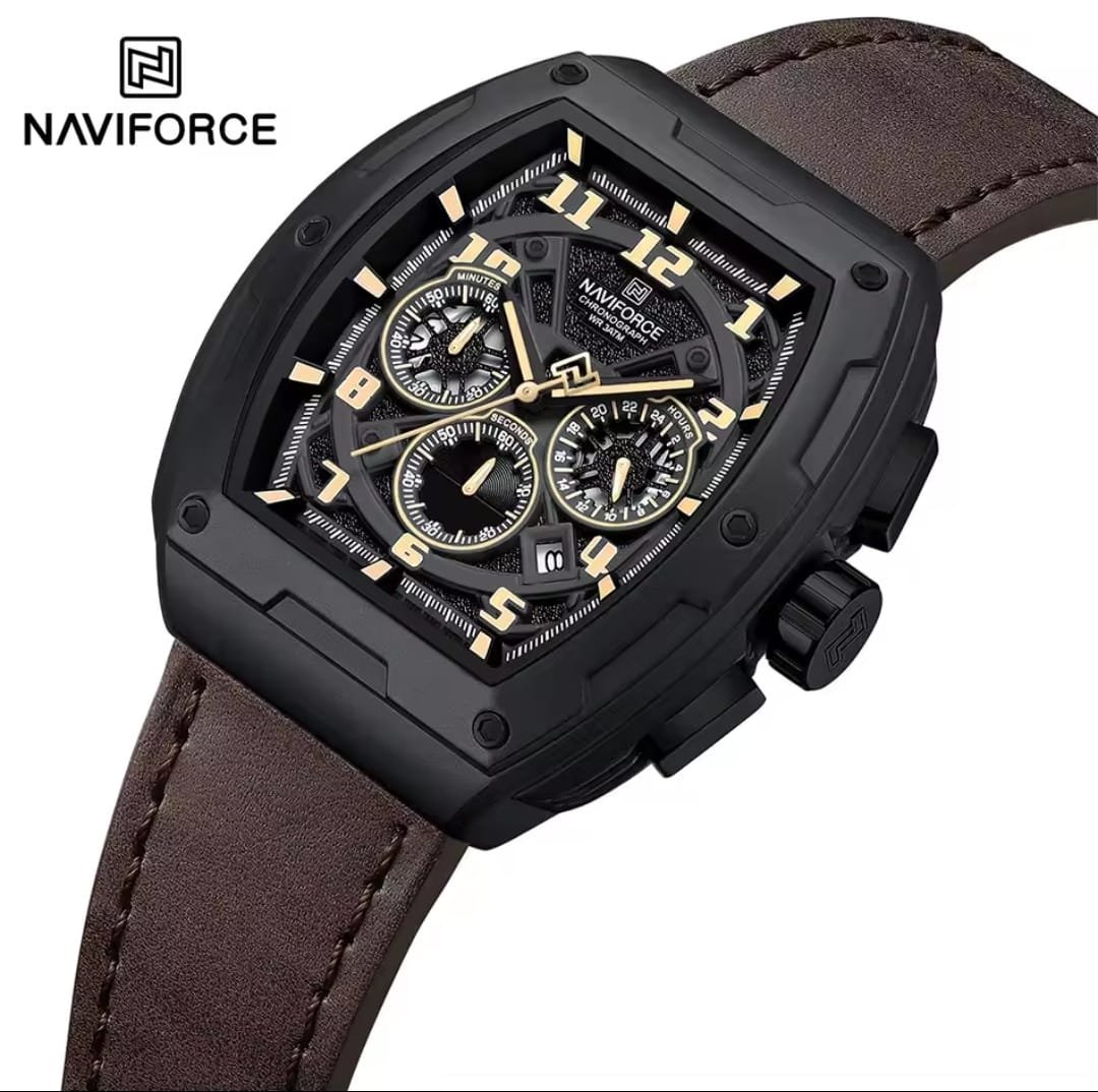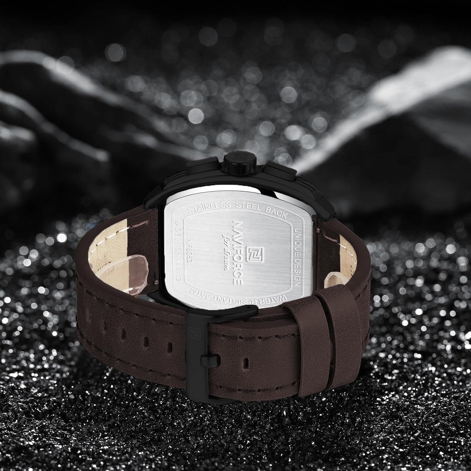 Montre Chronographe Naviforce NF8053 Pour Homme – Cuir Véritable – Tendance – Multifonction – Résistante à L’eau – Marron