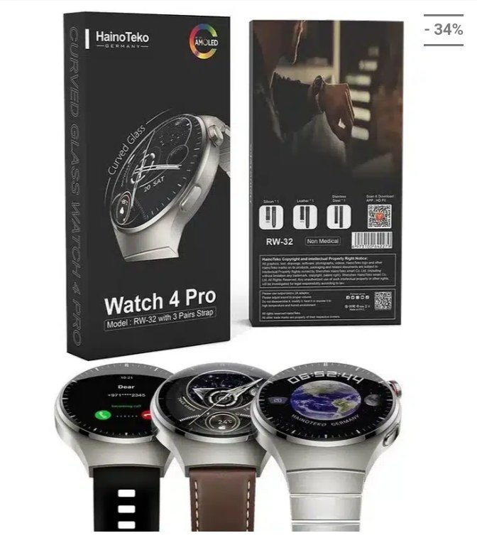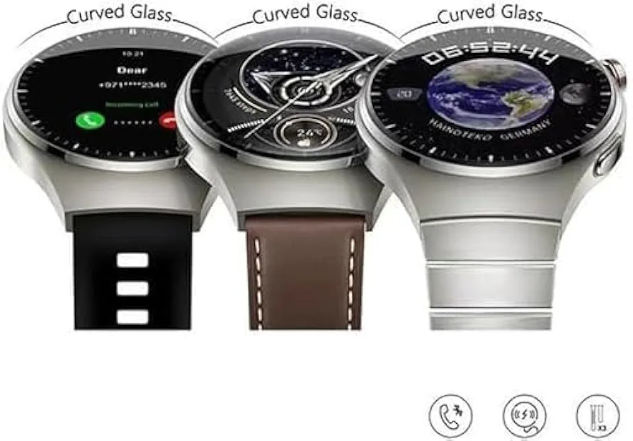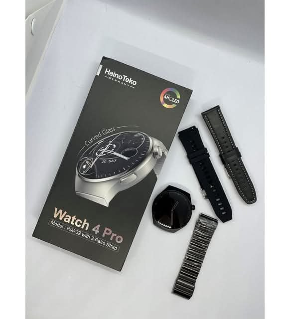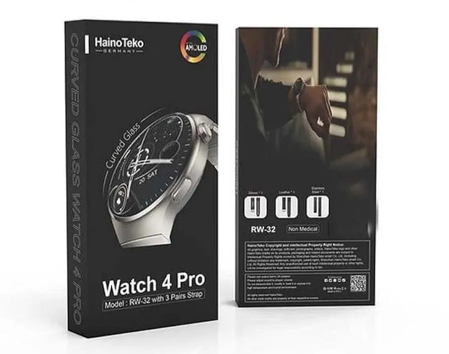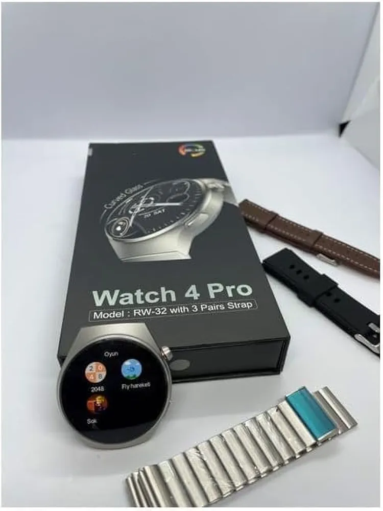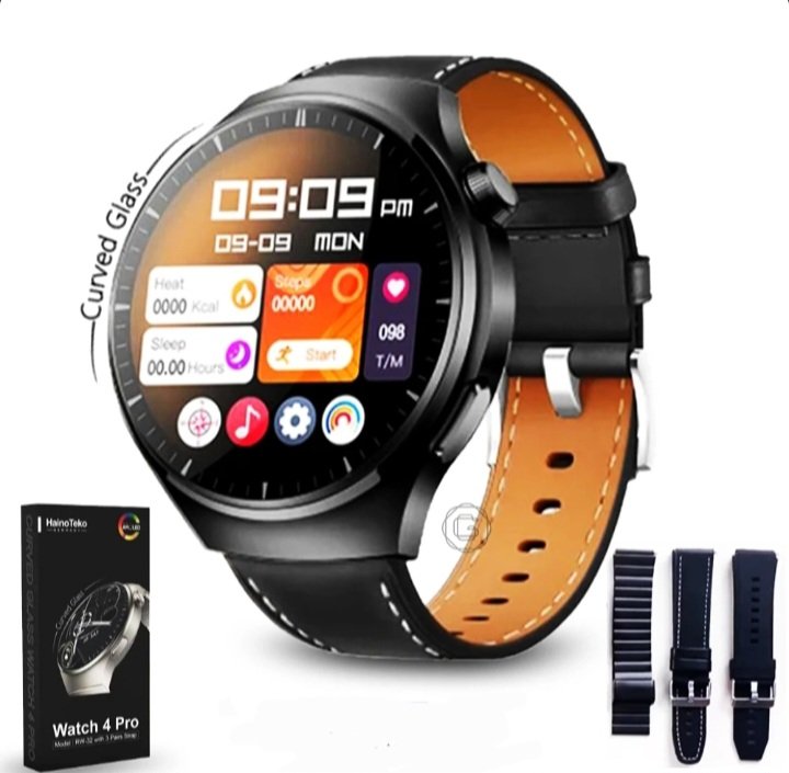 Montre Connectée AMOLED RW-32 4 Pro – Circulaire – Haute Définition – Courbée Avec Triple Bracelet et Chargeur Sans Fil – Noir