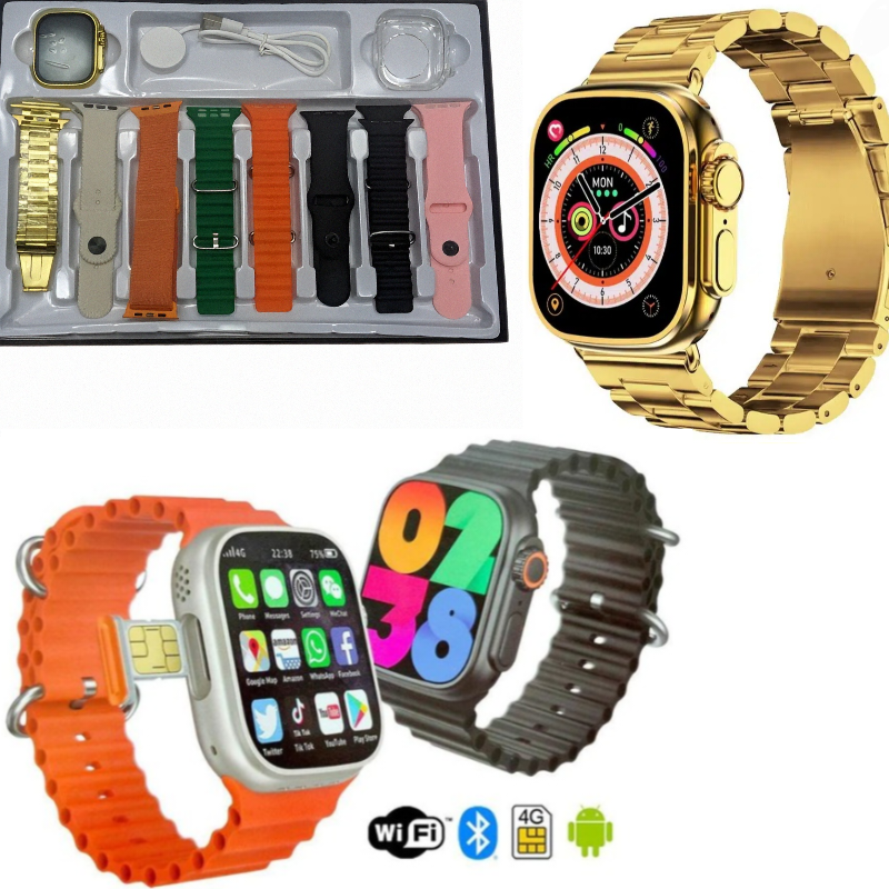 - 1× Montre connectée avec 8 bracelets et chargeur et boîtier.