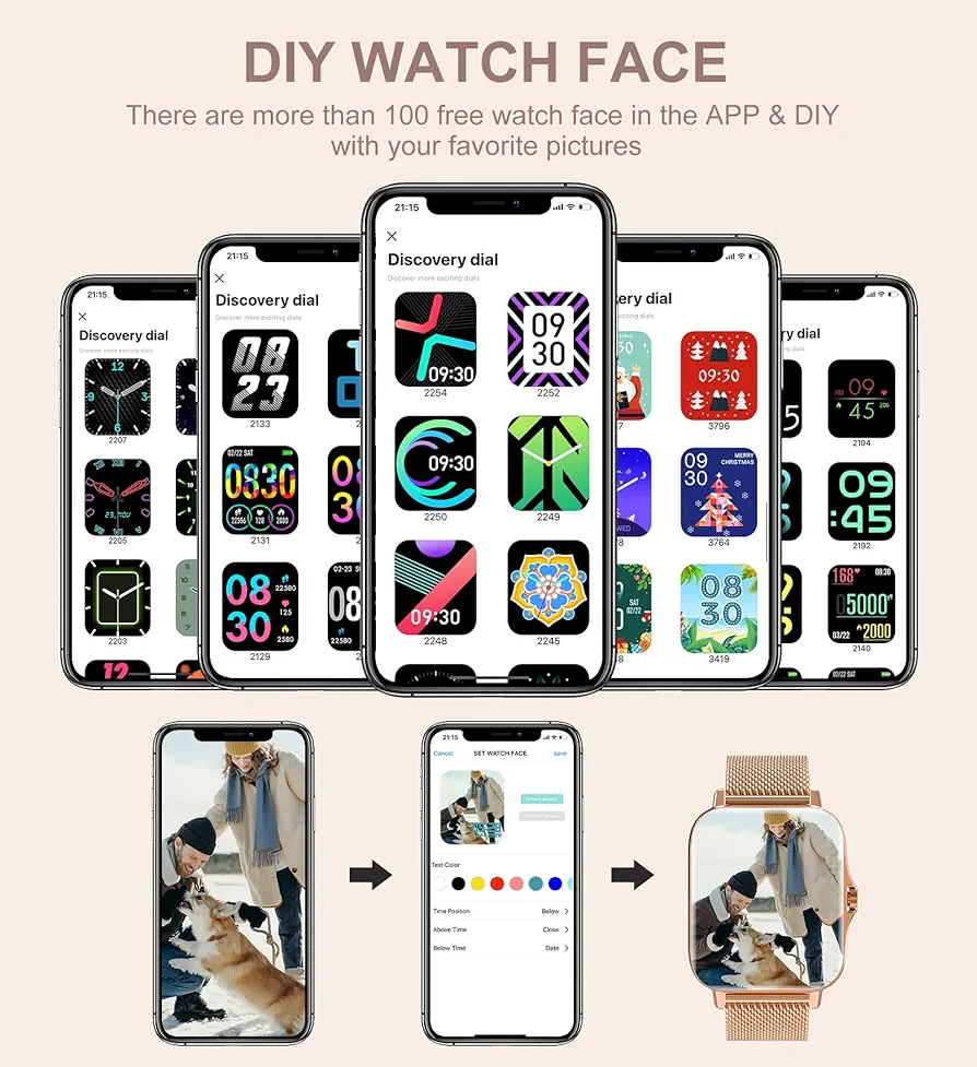 Montre Connectée Hainuteco SQ17 Pour Femme – Écran AMOLED – 3 Paires De Bracelets – Chargeur Sans Fil – Résistante à L’eau