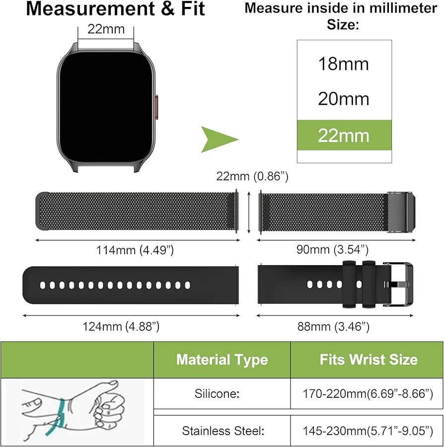 Elle est fournie avec un chargeur sans fil pratique, éliminant ainsi les câbles encombrants, ainsi qu’une gamme complète d’accessoires, dont un manuel d’utilisation et plusieurs bracelets.