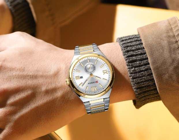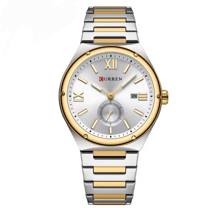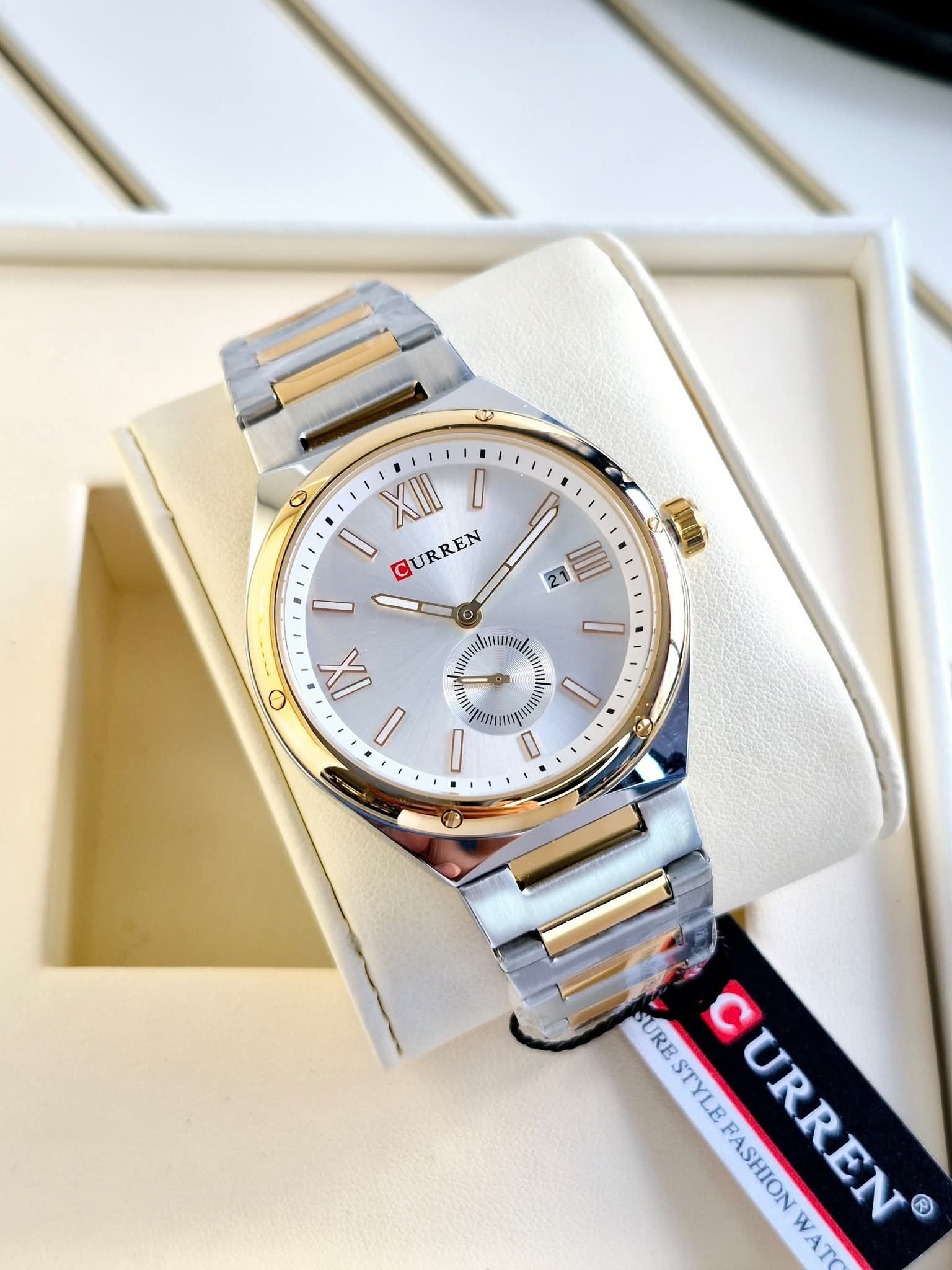 Montre Curren Pour Homme Avec Bracelet Bicolore en Acier Inoxydable Argenté et Doré – Affichage De La Date – Résistante à L’eau