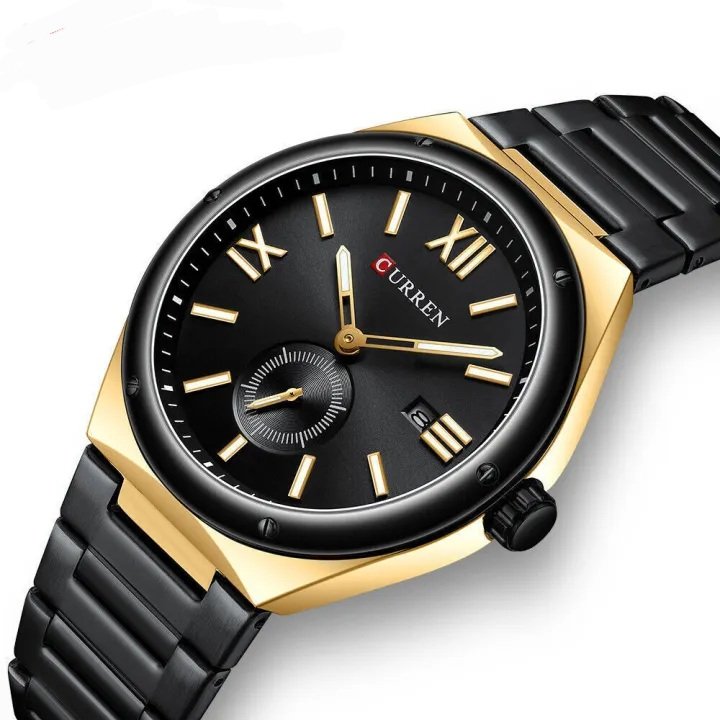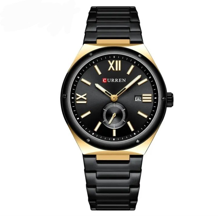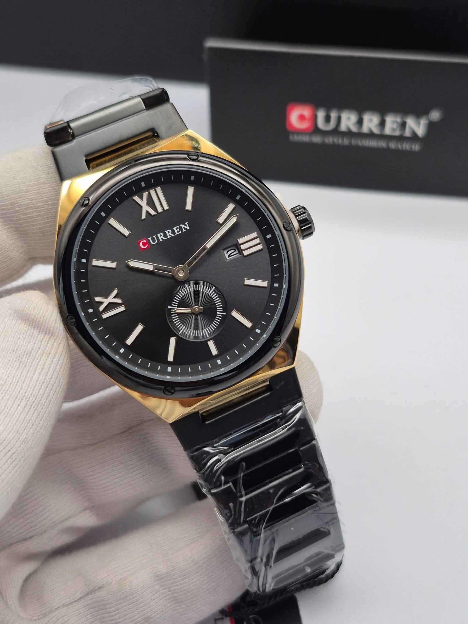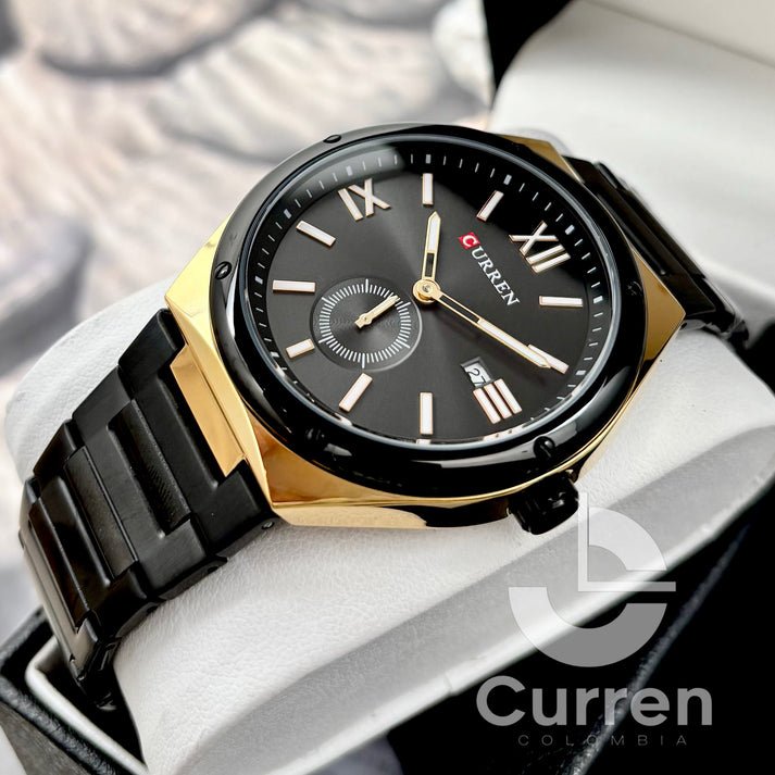 Montre Curren Pour Homme Avec Bracelet Bicolore en Acier Inoxydable Noir et Doré – Affichage De La Date – Résistante à L’eau