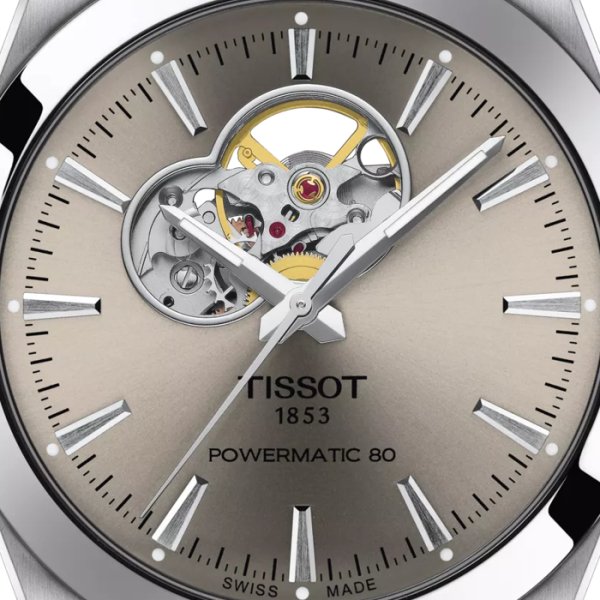 Montre De Luxe Tissot Gentleman Powermatic – Cœur Ouvert – Haute Qualité – Résistante à L’eau – Gris