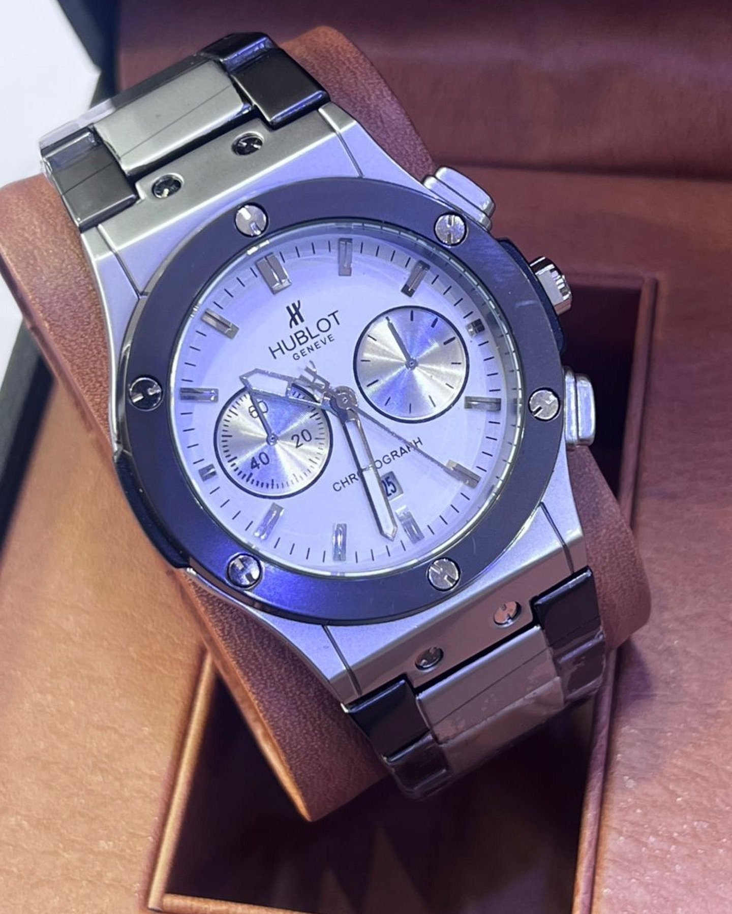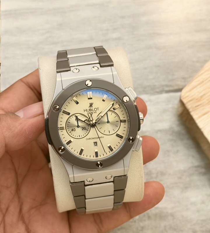 Montre Hublot Pour Homme – Bracelet En Acier Inoxydable – Résistance à l’eau – Qualité Premium – Gris