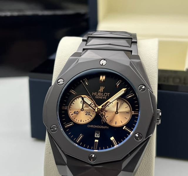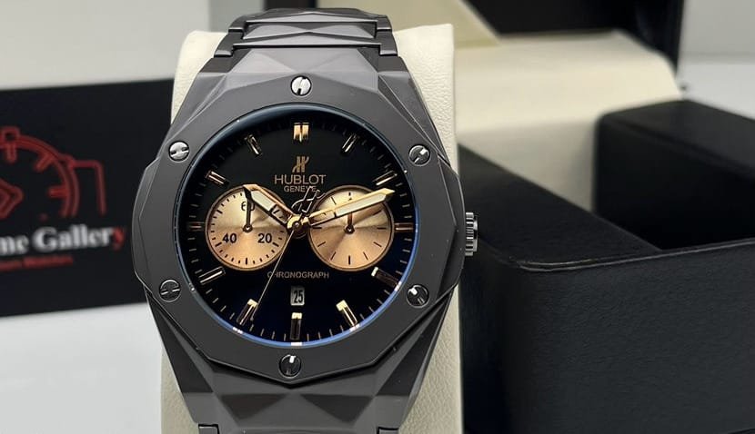 Montre Hublot Pour Homme – Bracelet En Acier Inoxydable – Résistance à l’eau – Qualité Premium – Noir et Doré