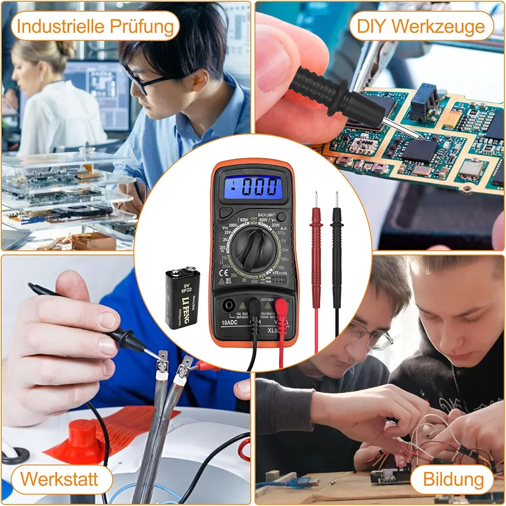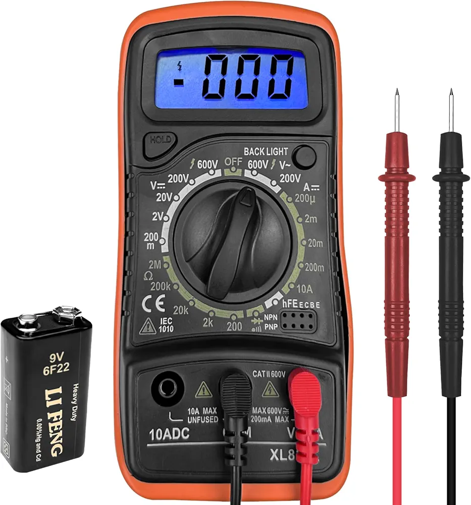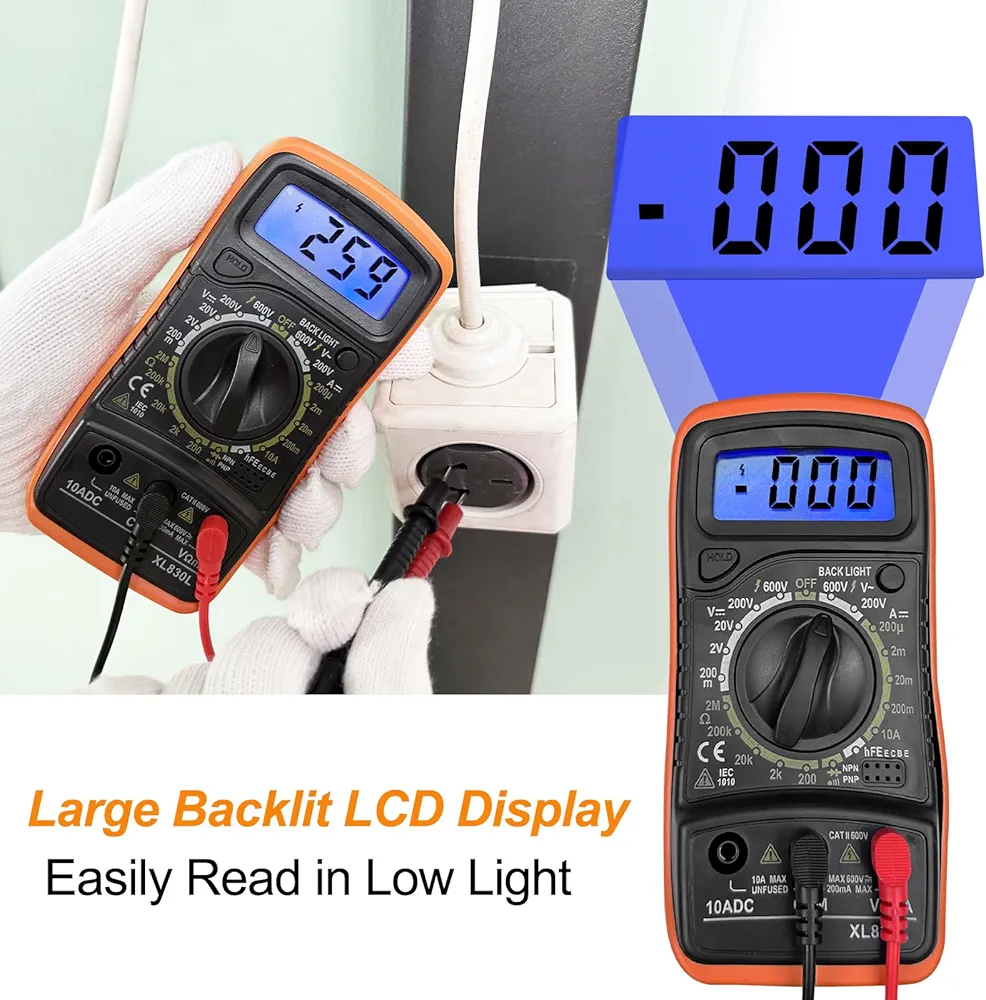Mesure jusqu’à 600 V AC/DC, 10 A AC/DC, résistance 60 MΩ, continuité, le testeur électrique peut également tester la continuité des fils, les diodes et la continuité. Idéal pour les prises domestiques, les fusibles, les batteries, le dépannage des circuits électriques automobiles, etc.