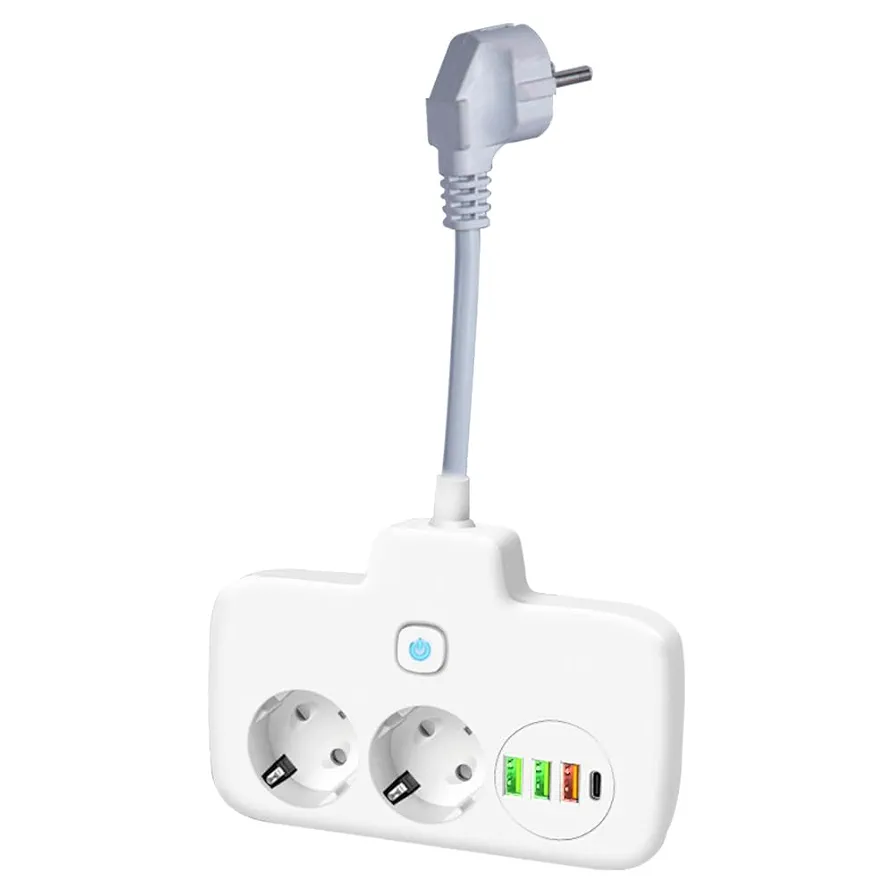 Conception 6 en 1 : la multiprise à 2 prises avec 3 ports USB et 1 port Type-