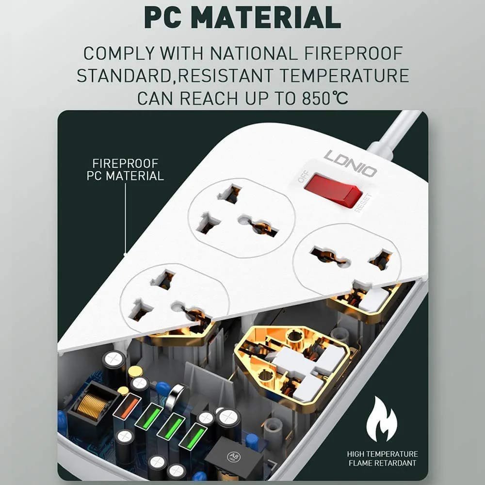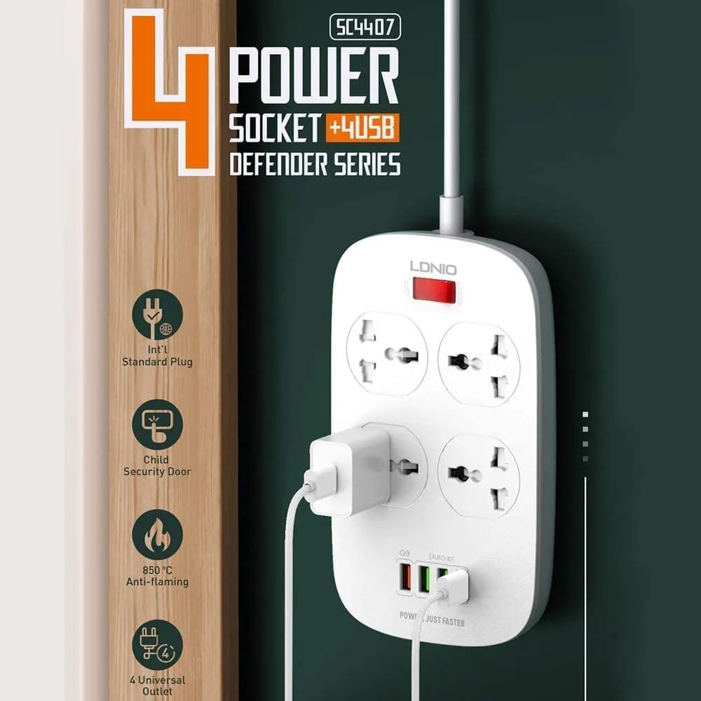 Cette multiprise LDNIO combine la puissance d’une rallonge classique avec la technologie de charge rapide moderne pour tous vos appareils.