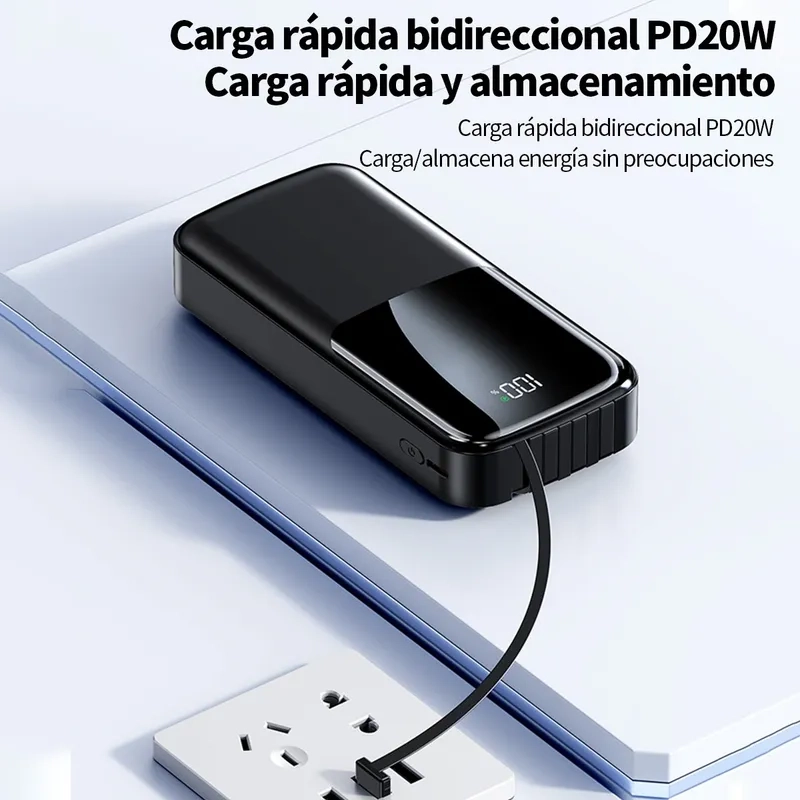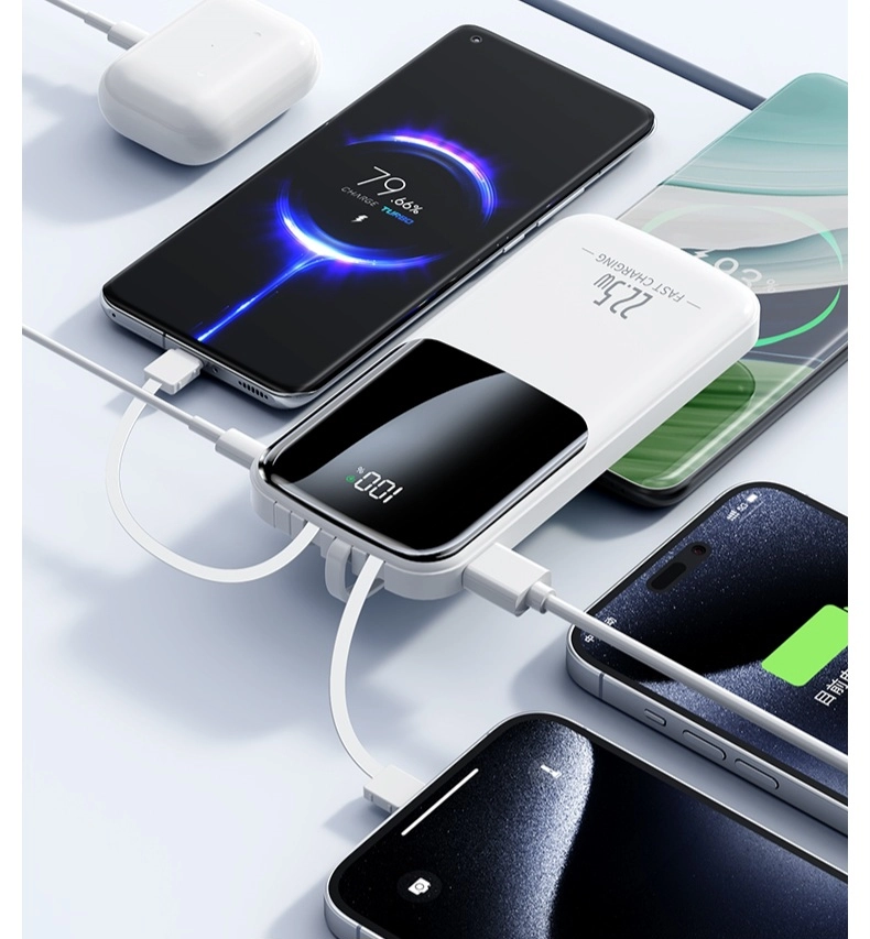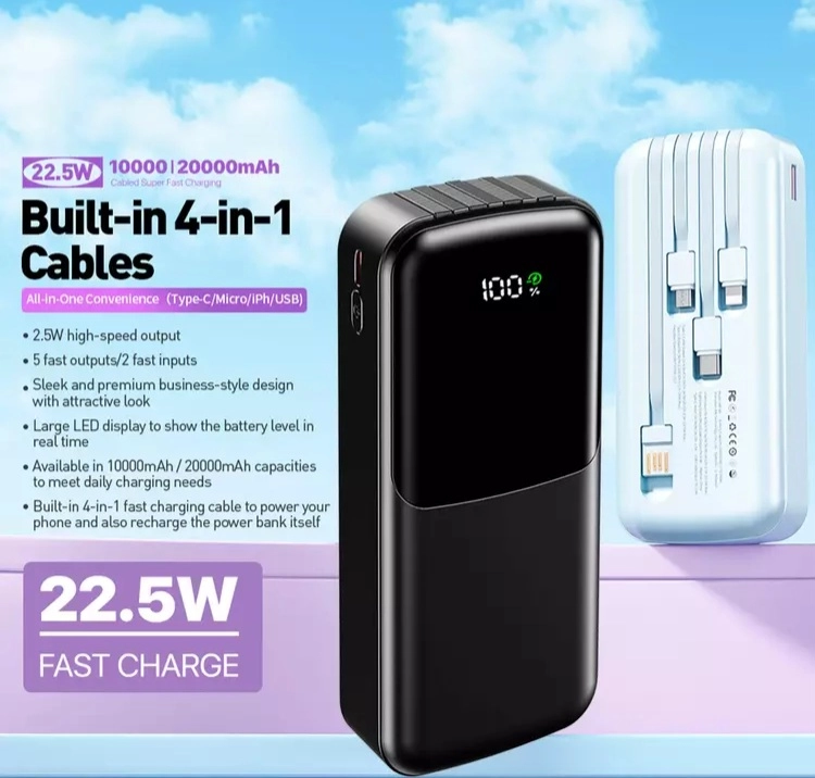 Nouvelle Batterie Externe Haute Capacité – 20 000 MAh – Charge Rapide – Écran LED – Port USB-C PD – 22,5 W – Quatre câbles Intégrés