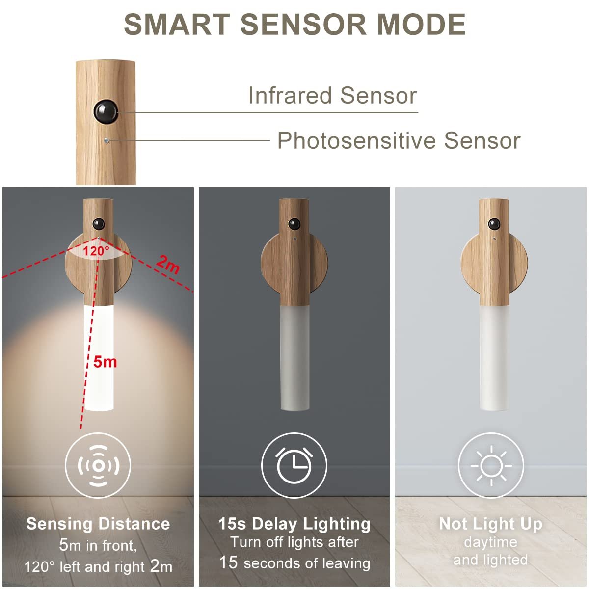 Cette applique murale en bois avec capteur intelligent est idéale pour les tables de chevet, les bureaux, les salles à manger, les espaces de travail, les armoires, les têtes de lit, les escaliers, les cuisines, les salons et les entrées.