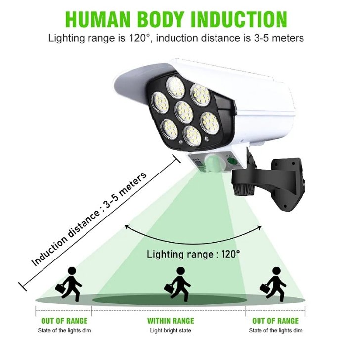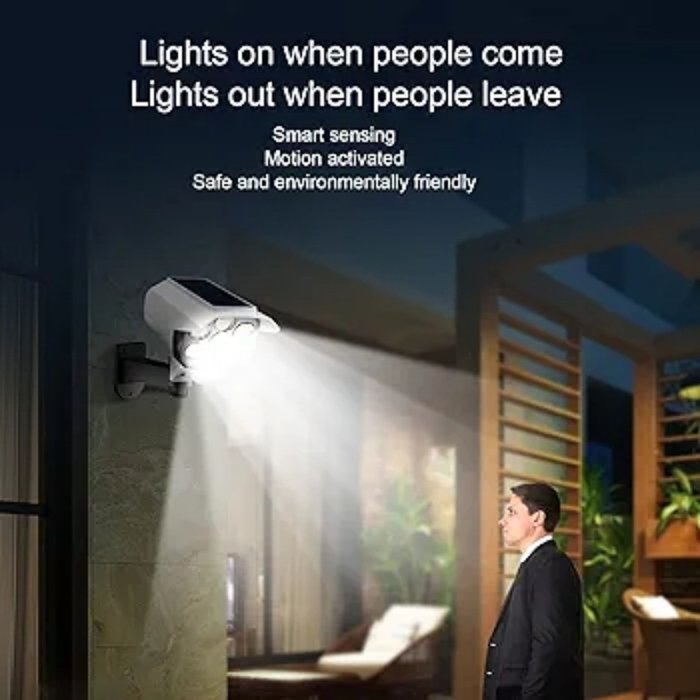 Pack DE 4 Lampes Solaire avec Détecteur De Mouvement Forme Caméra Surveillance Avec Télécommande