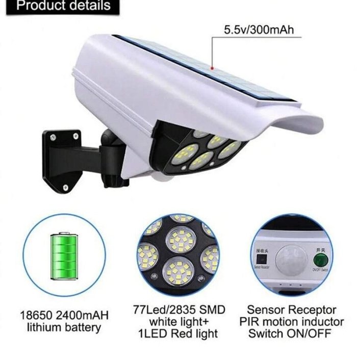 Pack De 3 Projecteurs Solaire Avec Capteur De Mouvement – Forme Caméra De Surveillance – 77 SMD Led
