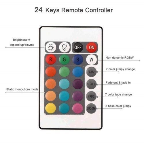 44 contrôleur IR clé à distance, ce changement de couleur bande LED avec variateurs de lumière et de luminosité non seulement comprend RGBW (rouge / vert / bleu / blanc) et 16 couleurs, mais aussi 4 modèles de bricolage qui vous pourront choisir de définir une ambiance ..