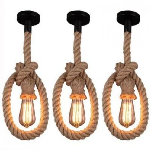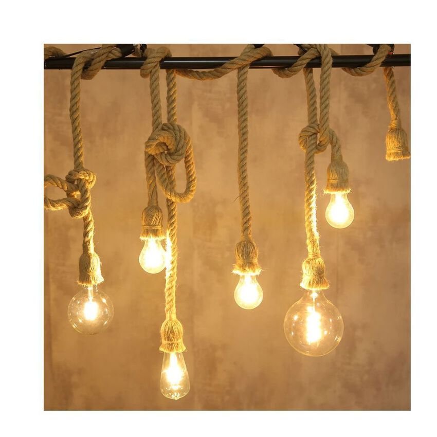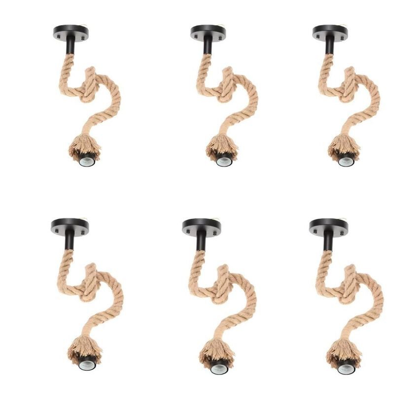 Pack De 6 Suspensions Corde En Chanvre Vintage Luminaire De Plafond – 1 M – Douille E27