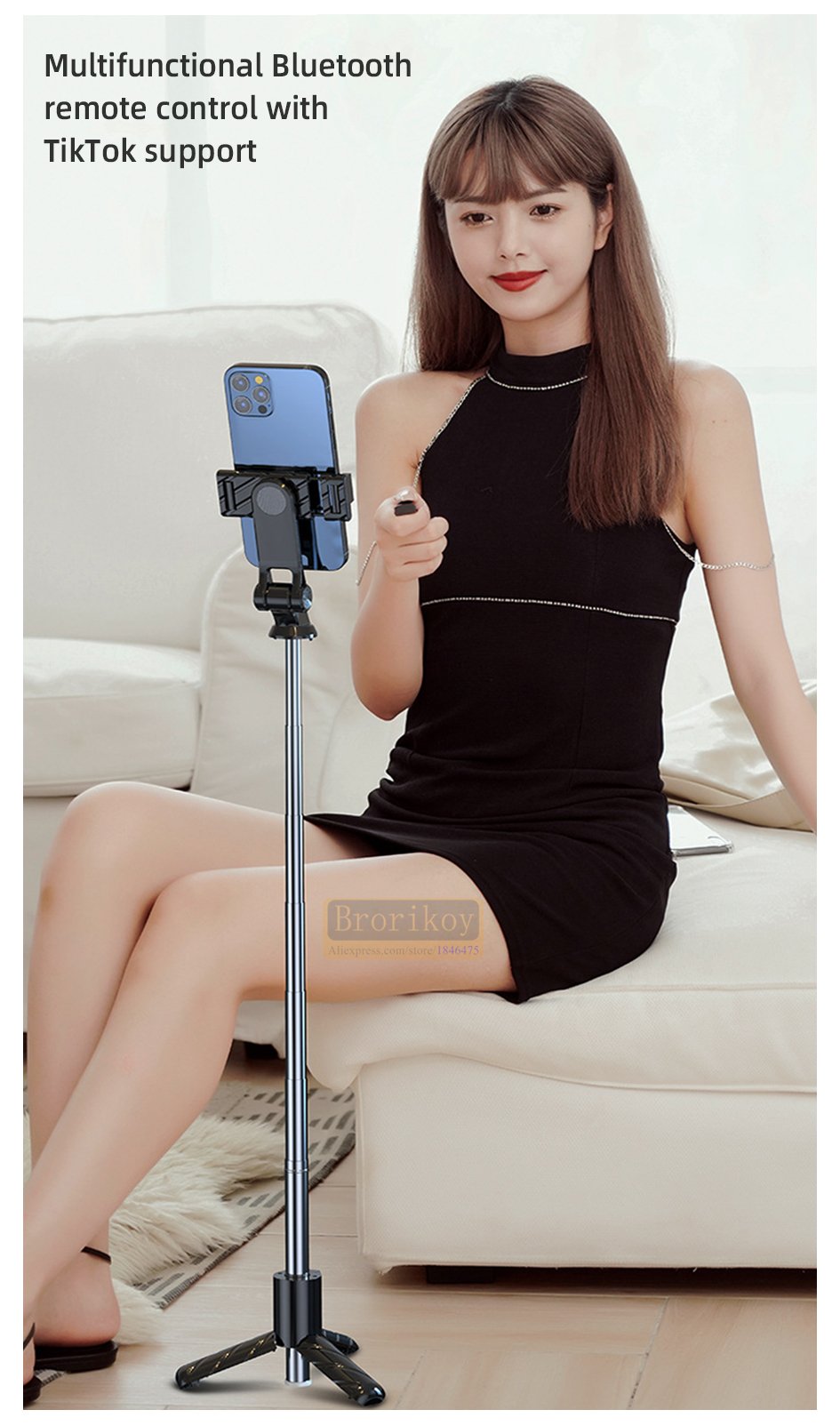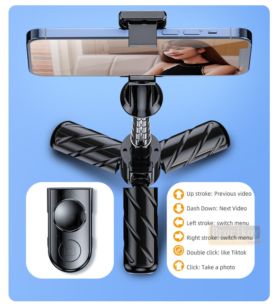 Perche à selfie trépied, télécommande vidéo TikTok, télécommande à écran coulissant, bouton « J’aime », prise de selfies depuis votre téléphone, feuilletage de livres numériques.