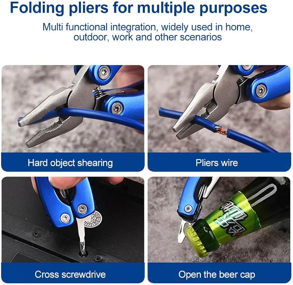 Pince multifonctionnelle adaptée à la réparation de meubles, au camping, à l’alpinisme, à la pêche, à la randonnée et à d’autres activités de plein air.