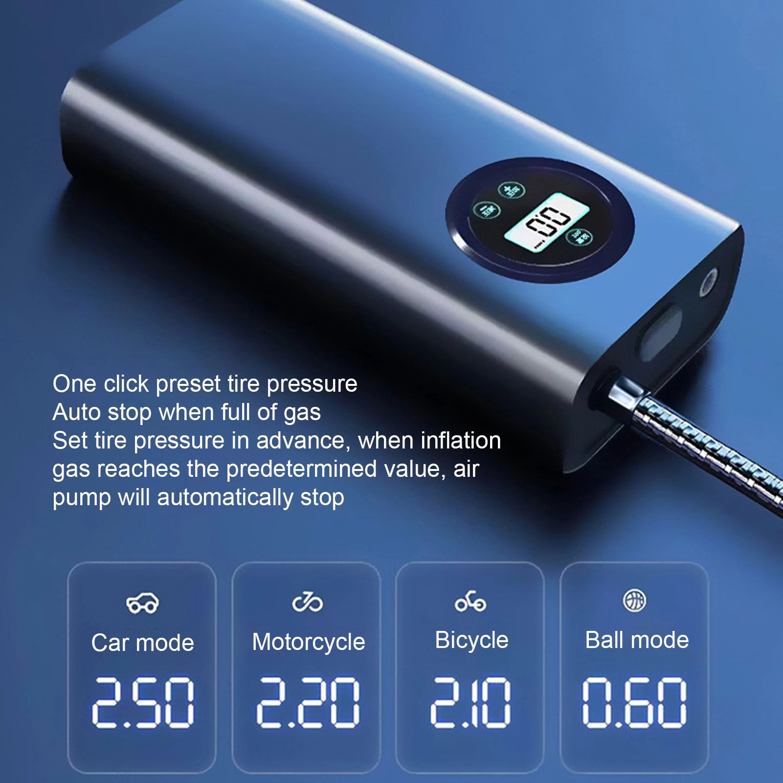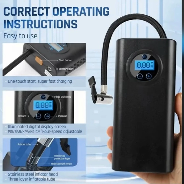 - Type de produit : Gonfleur de pneus portable.