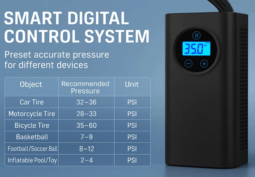 Pompe À Pneus Portable – Haute Qualité – 120 W – Affichage clair – Rechargeable