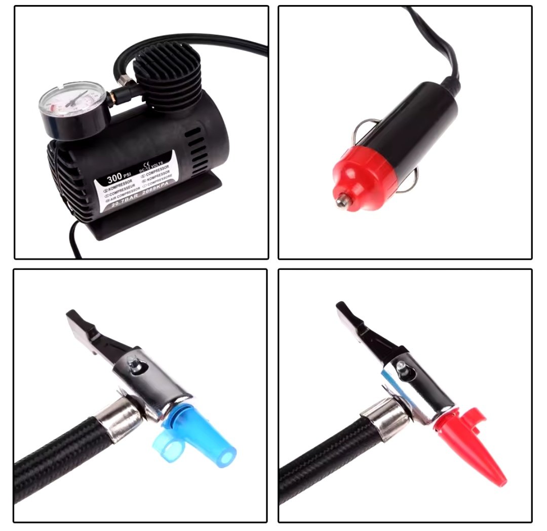 Équipé d’une variété de buses gonflables, qui peuvent être utilisées pour les pneus de voiture, de vélo et de moto, et peuvent également être utilisées pour les jeux de ballon, l’aviron, etc.