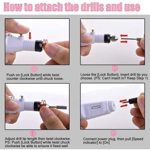 Avec cette ponceuse électrique portable polyvalente, vous pouvez effectuer la plupart des traitements de salon professionnels à la maison tels que limer, façonner, sculpture, polissage, forage, manucure, pédicure, élimination des callosités et des peaux mortes.