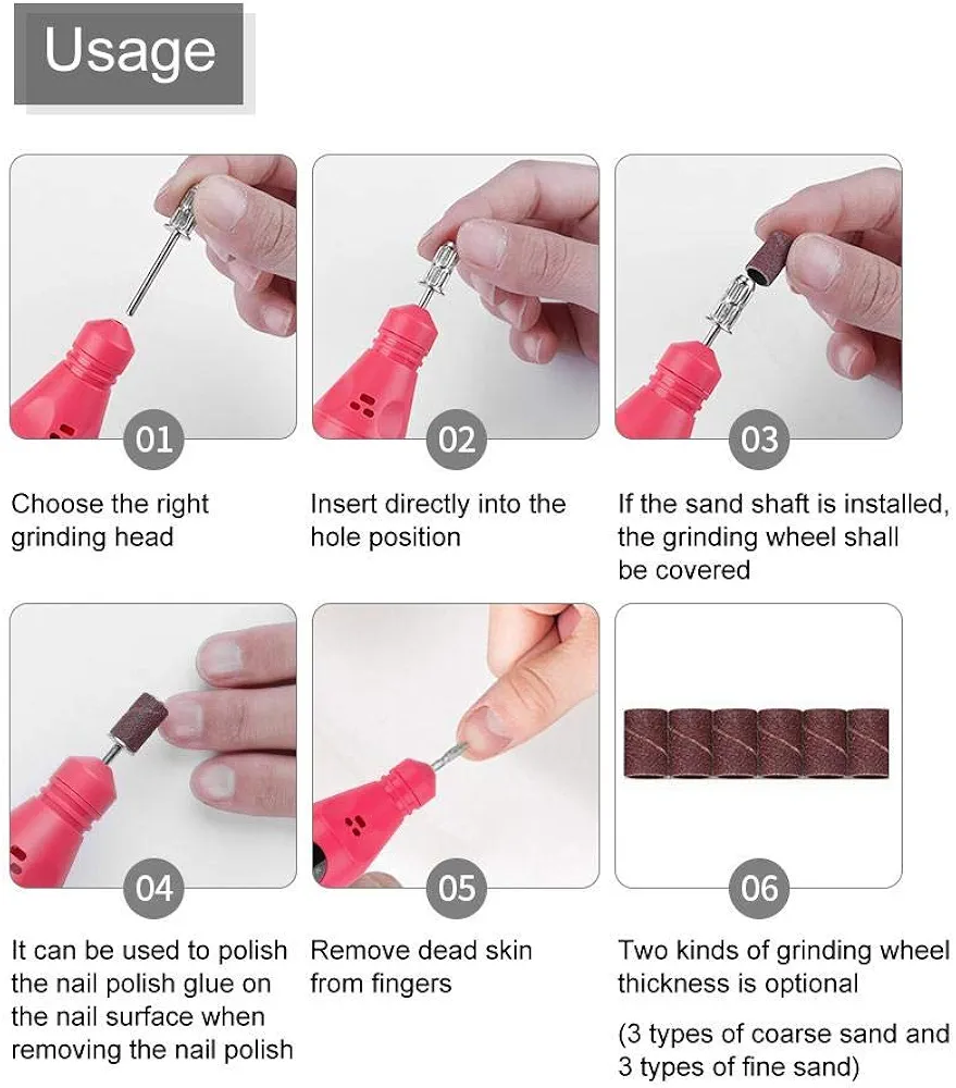 Avec cette ponceuse électrique portable polyvalente, vous pouvez effectuer la plupart des traitements de salon professionnels à la maison tels que limer, façonner, sculpture, polissage, forage, manucure, pédicure, élimination des callosités et des peaux mortes.