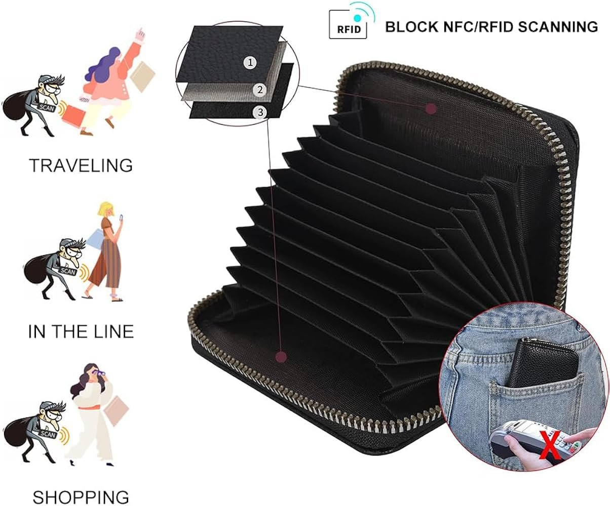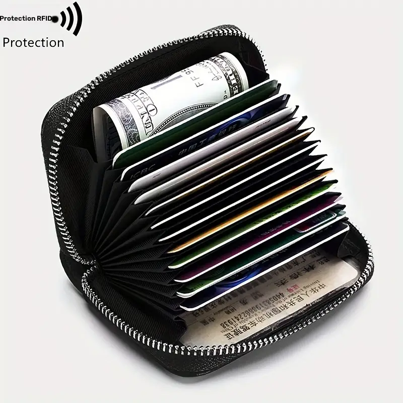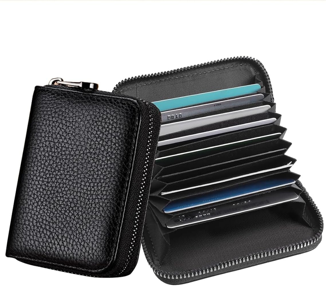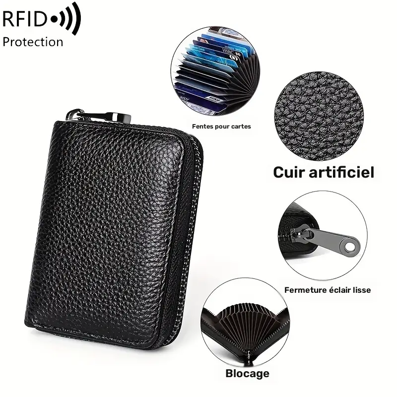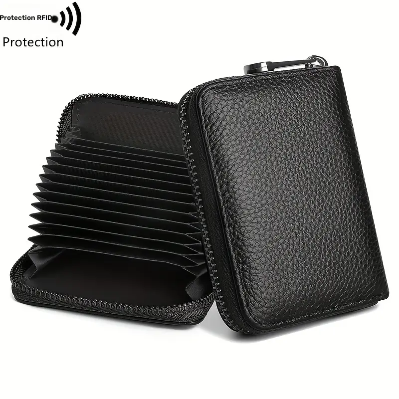 Porte-cartes De Crédit Zippé en Cuir – Protection RFID – 9 Emplacements Pour Cartes et 2 Emplacements Pour Billets