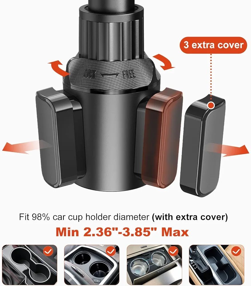 Ce porte-gobelet est conçu pour être universel, garantissant qu’il s’adapte facilement à la console centrale ou au porte-gobelet existant de la majorité des modèles de voitures.