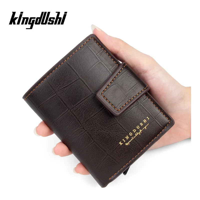Portefeuille 2 en 1 Intelligent En Cuir Pour Cartes De Crédit – Billets De Banque – Métal Fin Pour Homme – Pliable – Marron