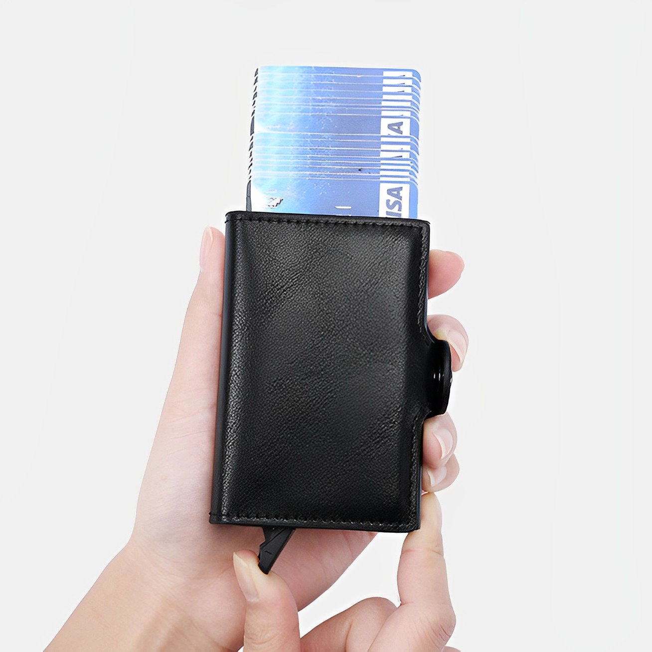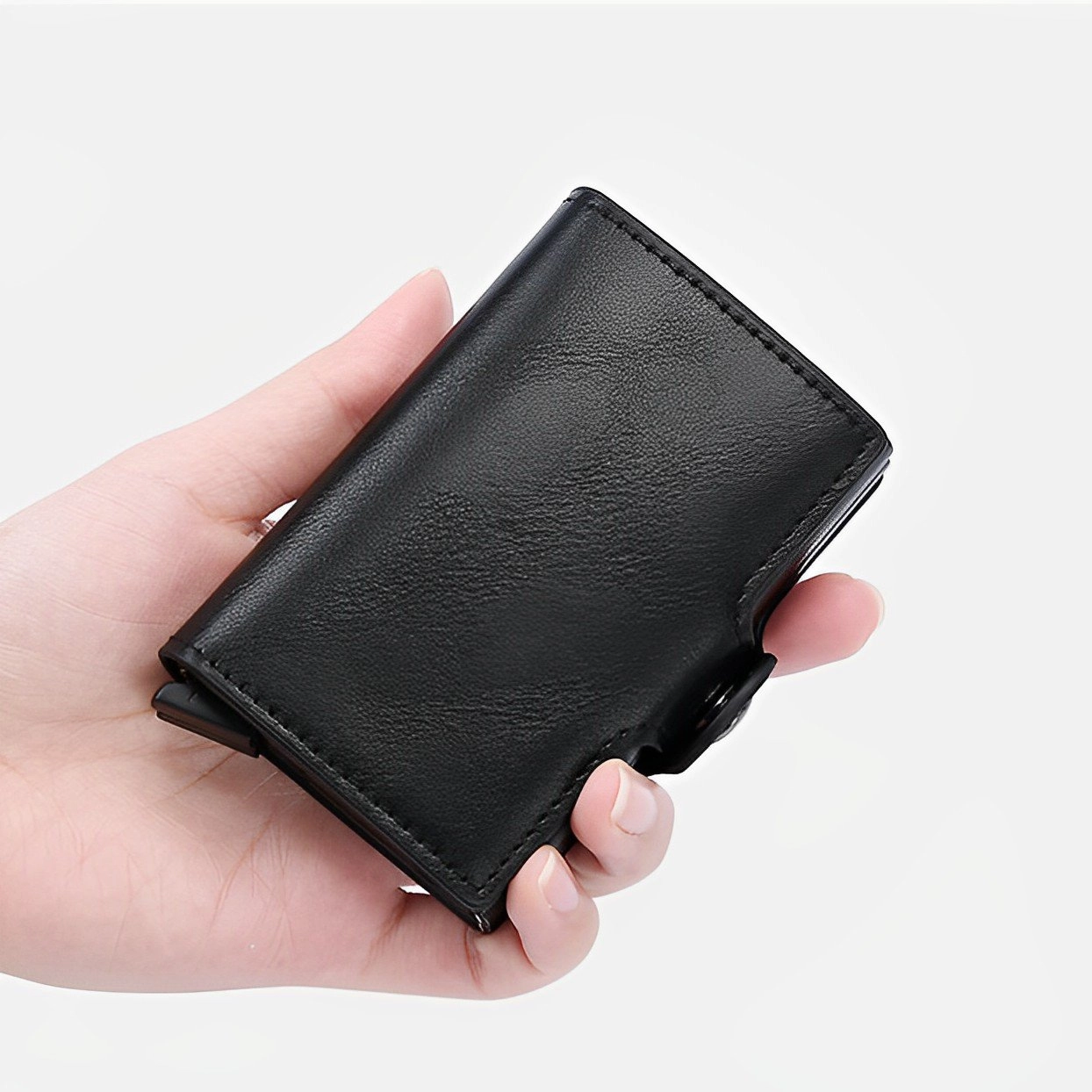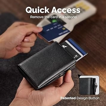 Portefeuille 2 en 1 Intelligent En Cuir Pour Cartes De Crédit – Billets de Banque – Métal Fin Pour Homme – Pliable – Noir