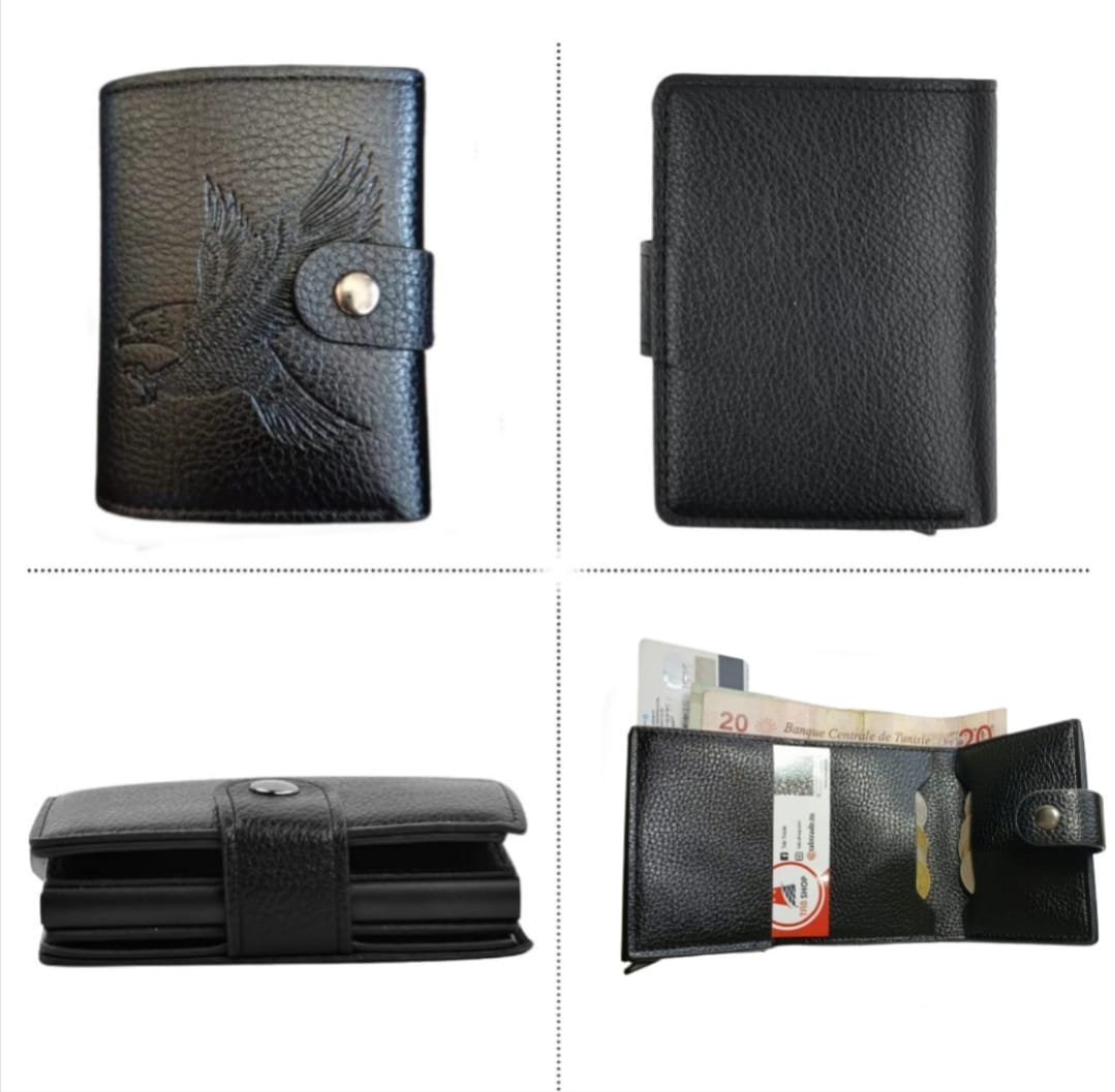 Portefeuille 2 en 1 Intelligent En Cuir Pour Cartes De Crédit – Billets De Banque – Métal Fin Pour Homme – Pliable – Noir