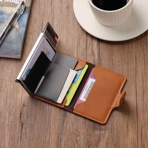 Portefeuille 2 en 1 Intelligent en Cuir Pour Cartes De Crédit – billets de banque – Métal Fin pour Homme – Pliable